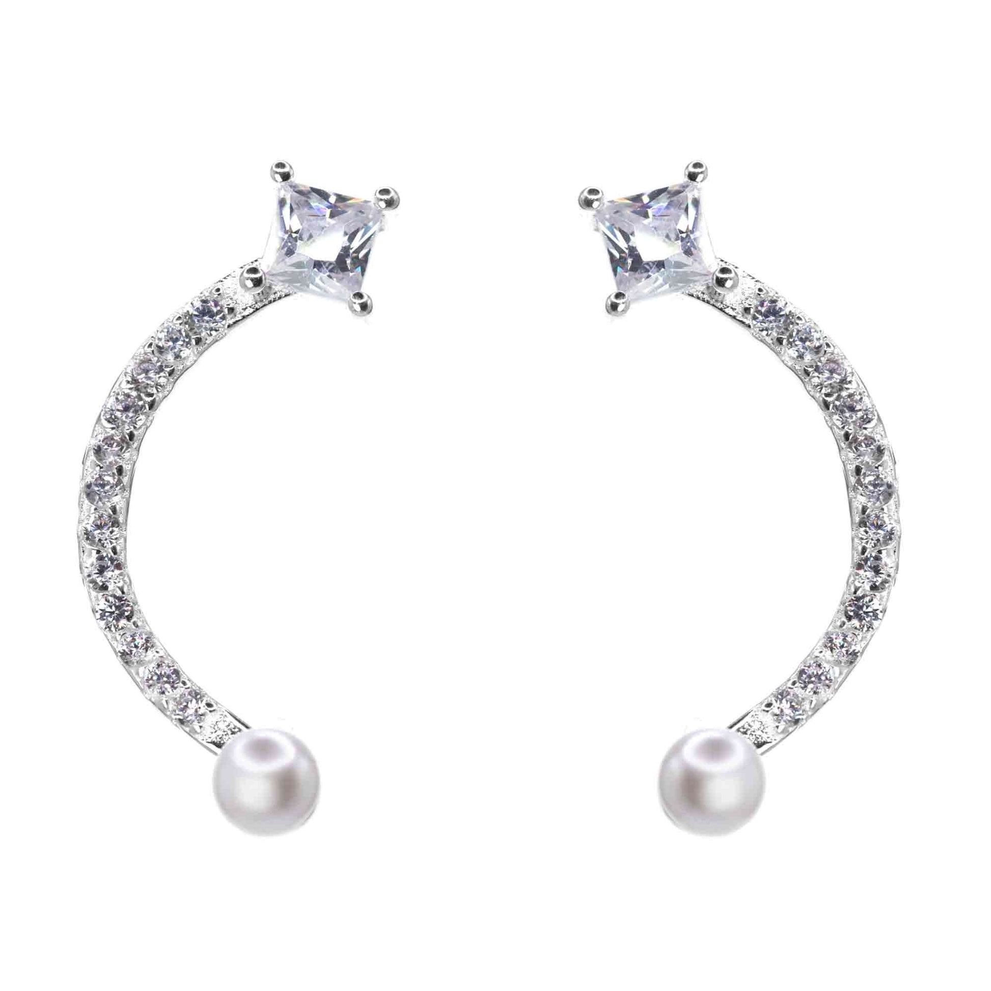 Aros de Plata 925 Arcos de Circones con Perla. Peso 1,43 Gramos Aprox. Tamaño 1,8 cm.