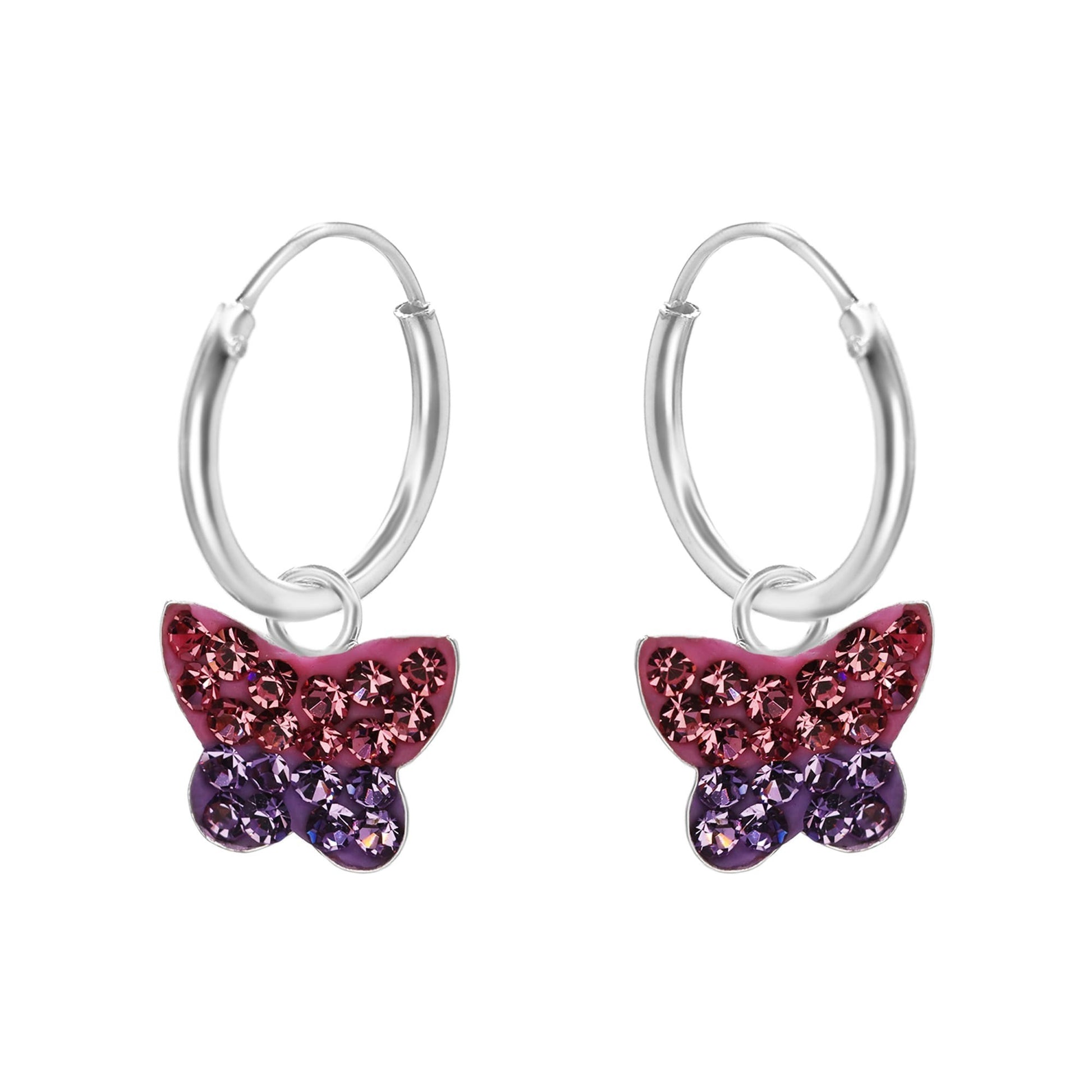 Aros de Plata 925 Argolla con Colgante Mariposa Strass Bicolor