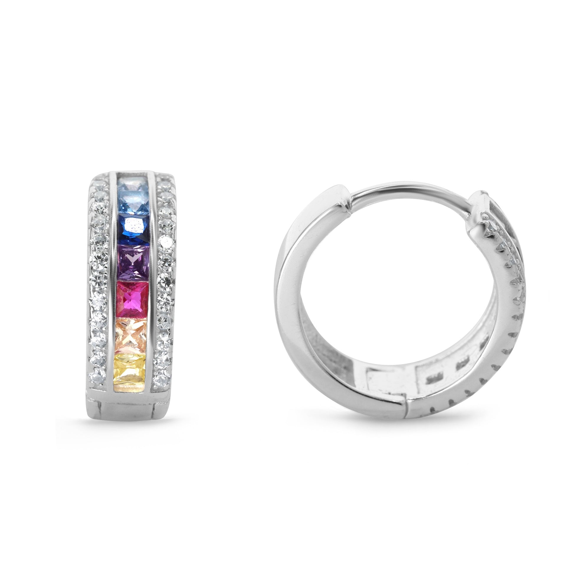 Aros de Plata 925 Argollas Circones de Colores y Broche Huggies.