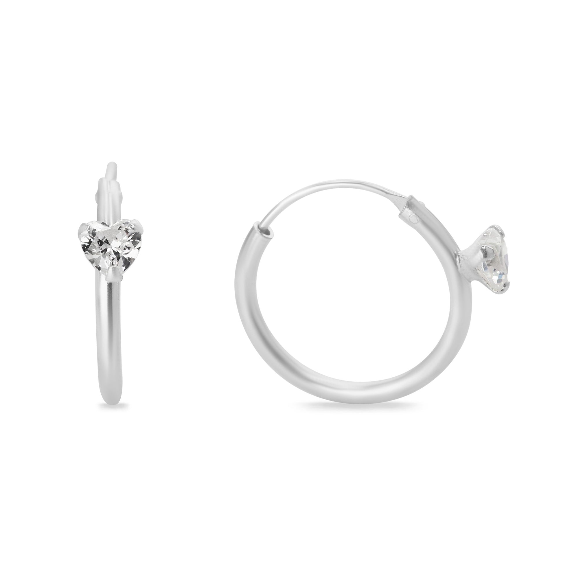 Aros de Plata 925 Argollas con Circón de Corazón.