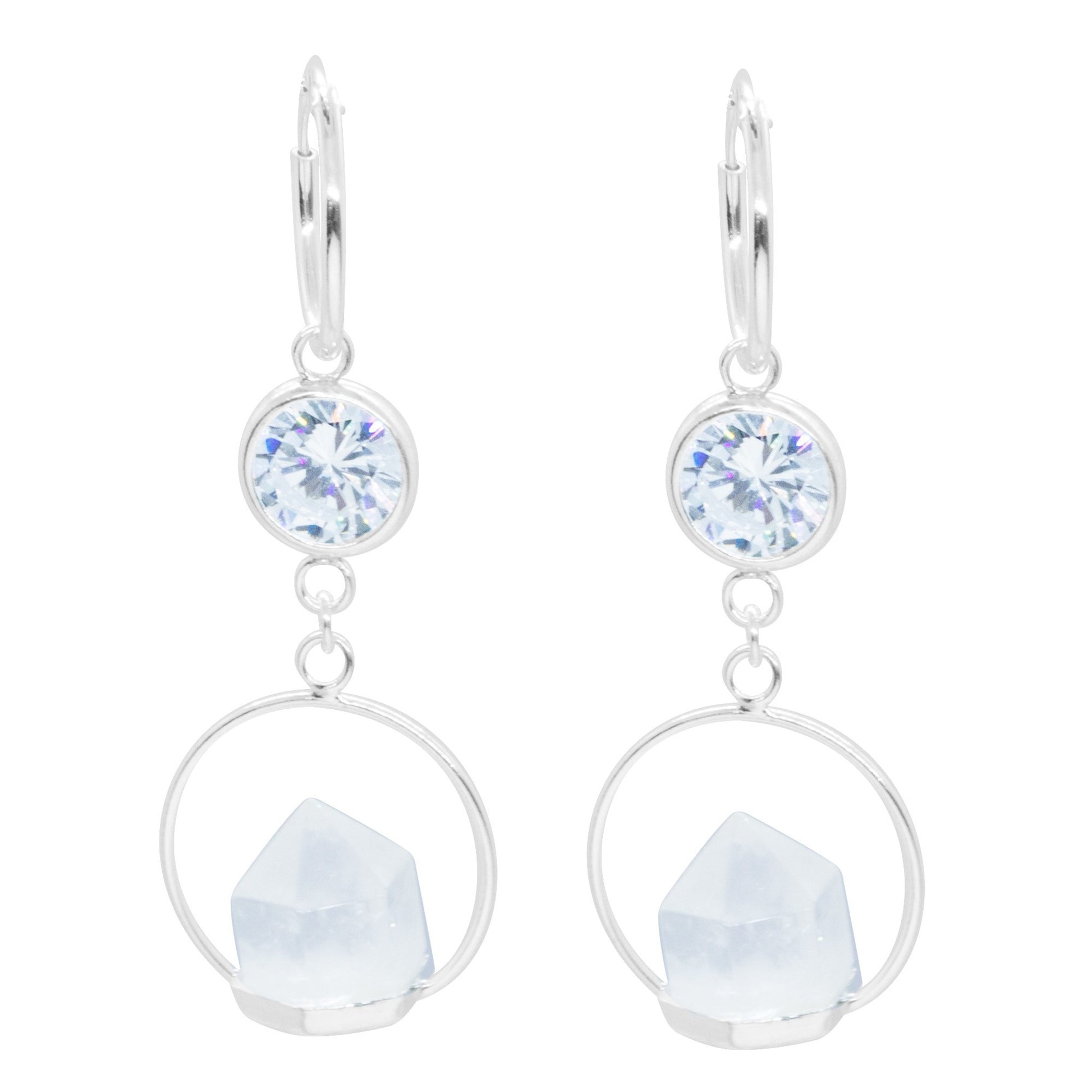 Aros de Plata 925 Circón con Piedra de Cuarzo