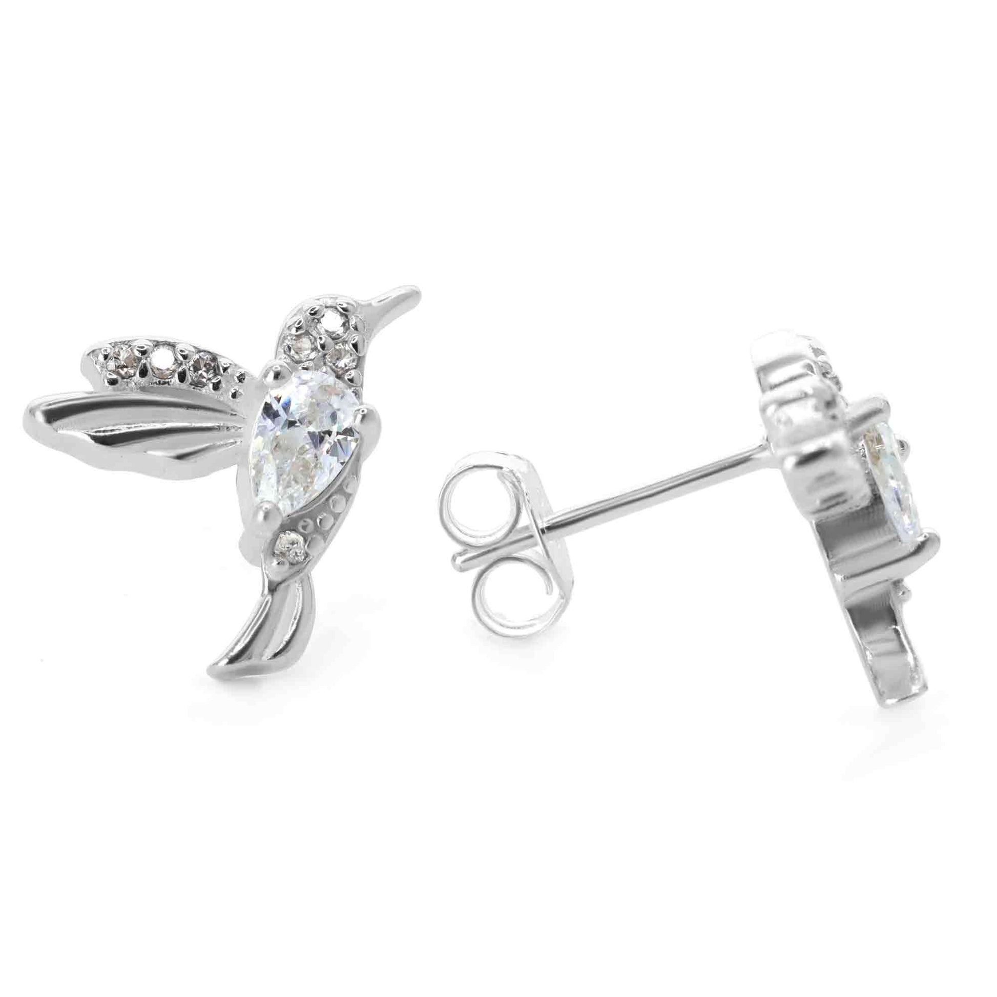 Aros de Plata 925 Colibrí con Circones. Peso 2,49 Gramos Aprox. Tamaño 1,4 cm.