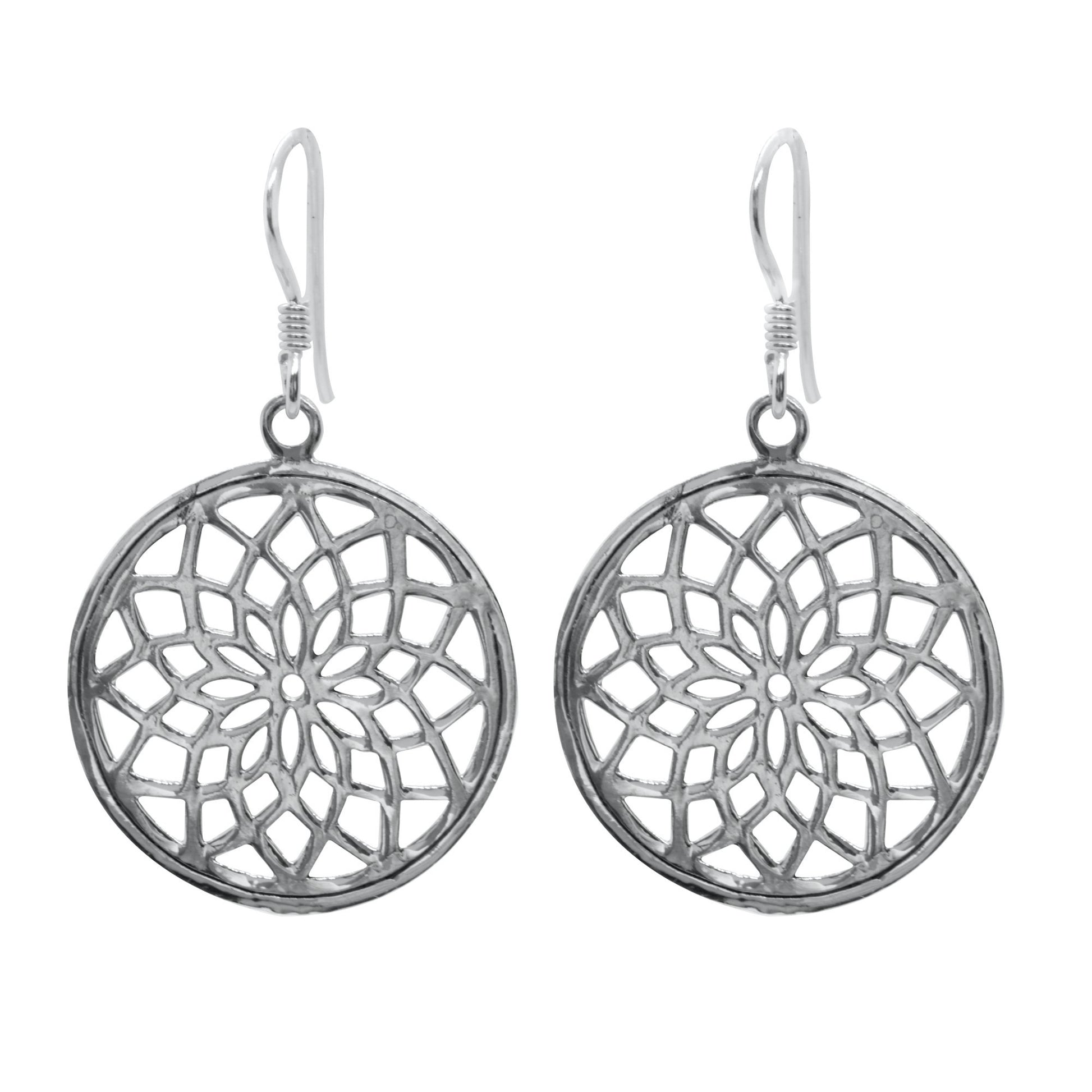 Aros de Plata 925 con Mandala con un Peso 2,96 Gramos Aprox. Tamaño 3,5 cm.