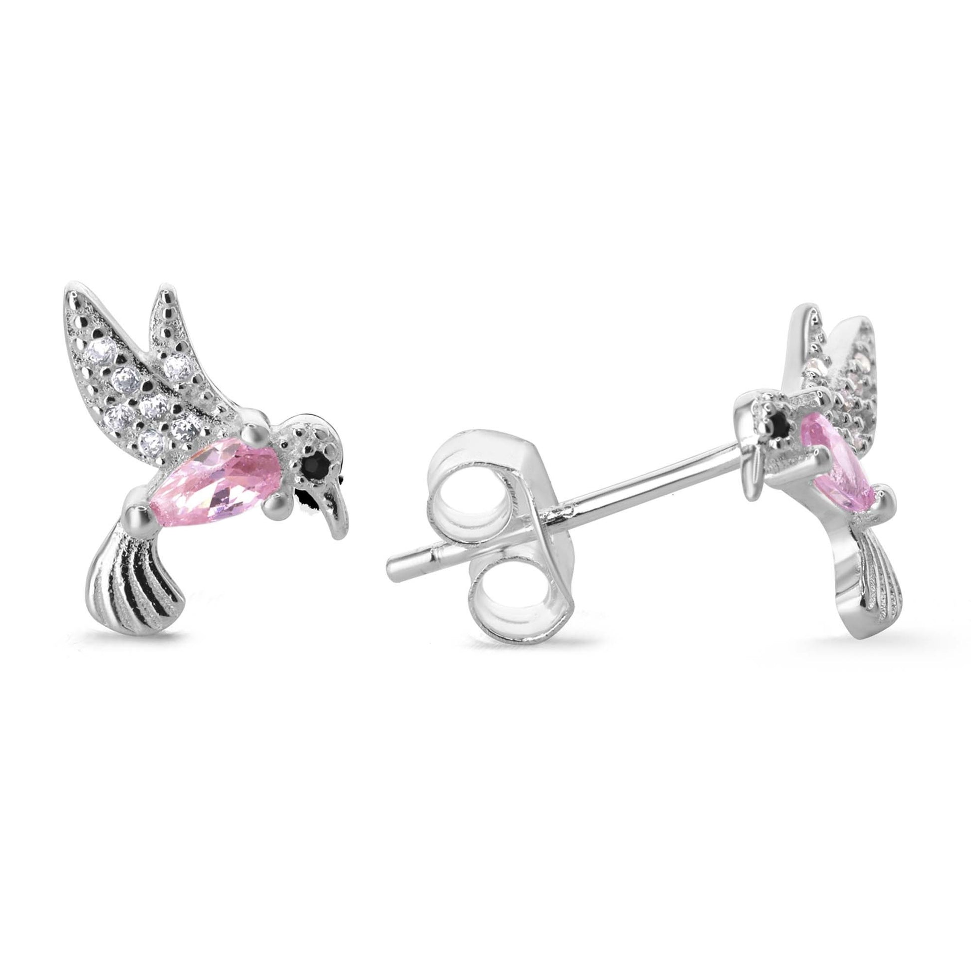 Aros de Plata 925 Diseño Colibrí Circón Rosado