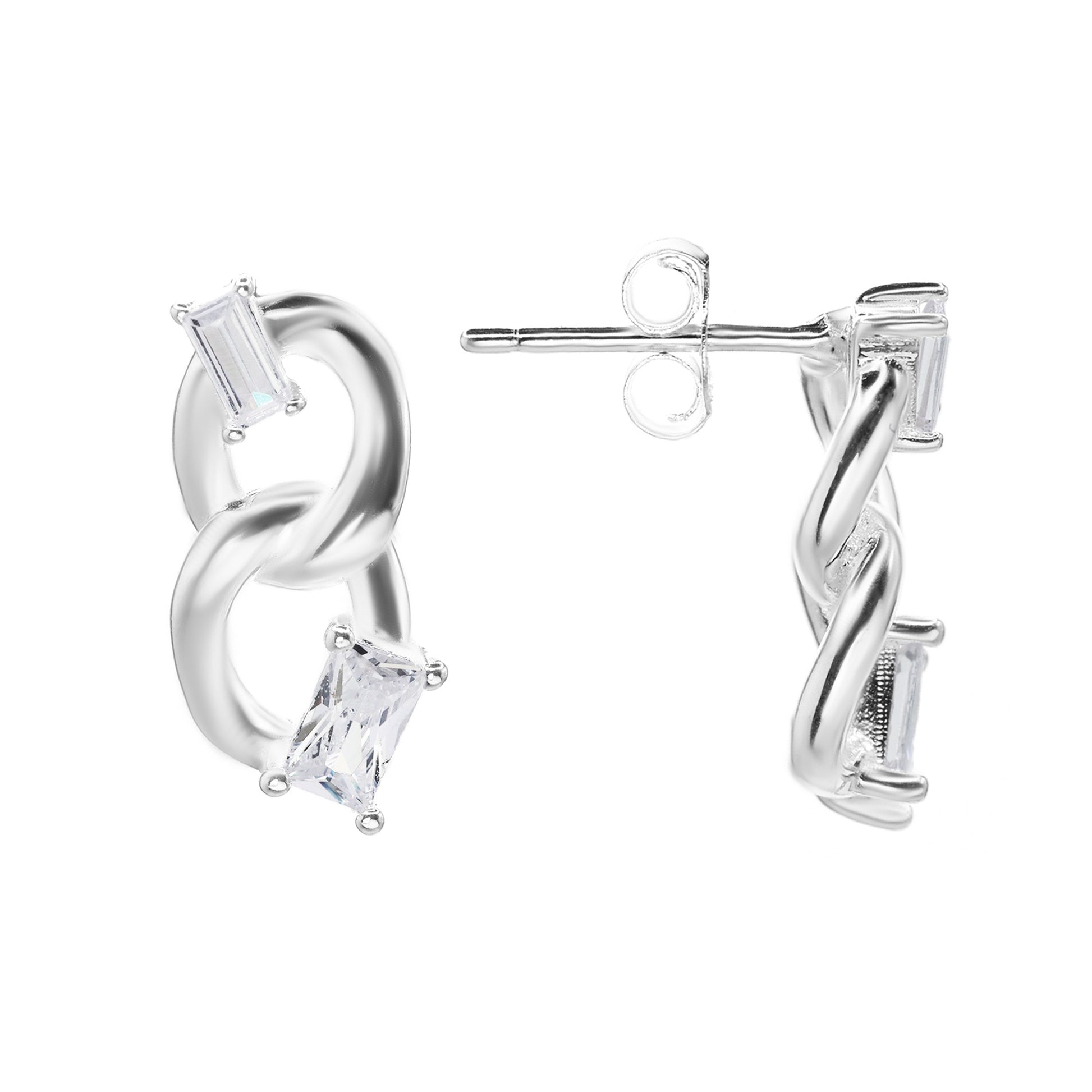 Aros de Plata 925 Diseño Eslabón con Destellos de Circones