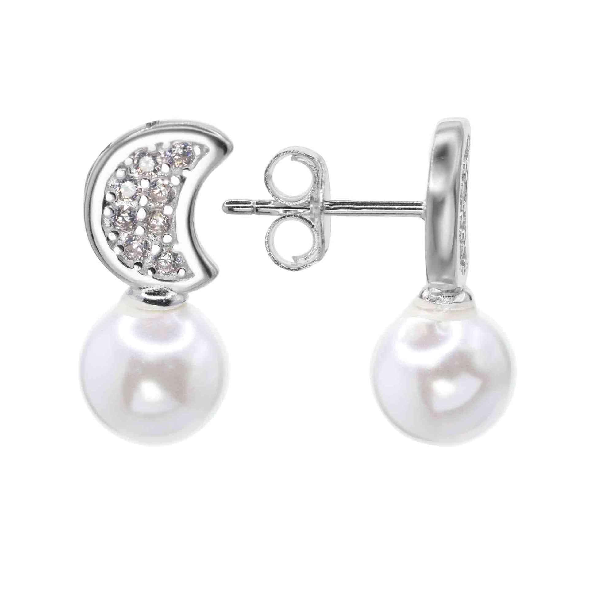 Aros de Plata 925 Diseño Luna de Circones con Perlas - DJOYAS.