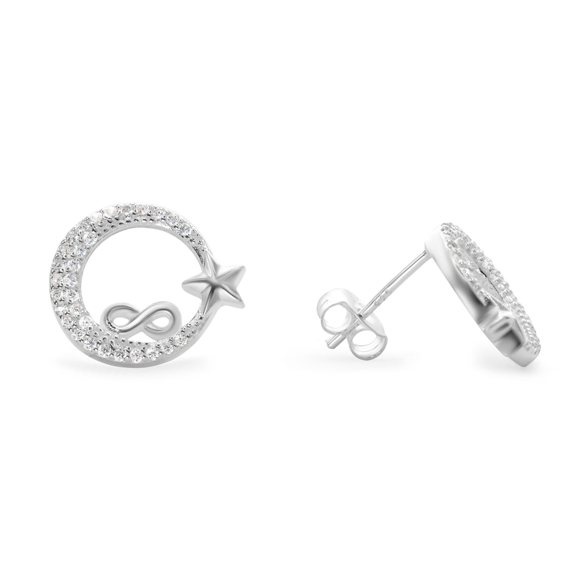Aros de Plata 925 Diseño Luna de Estrella e Infinito con Circones