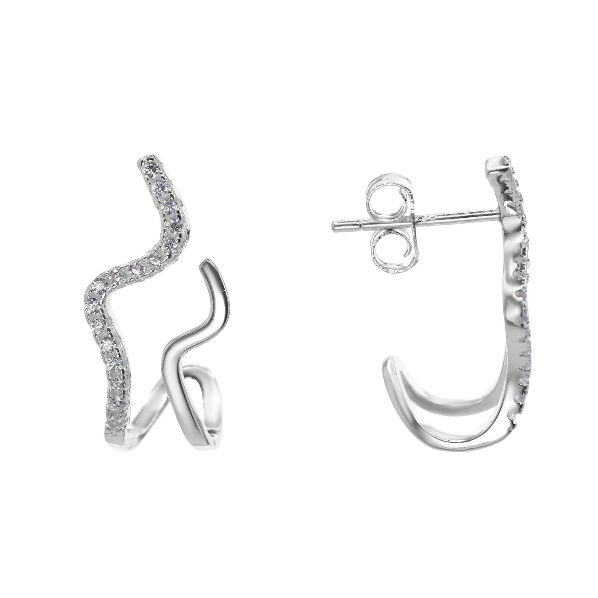 Aros de Plata 925 Diseño Onda Lisa Y Circones
