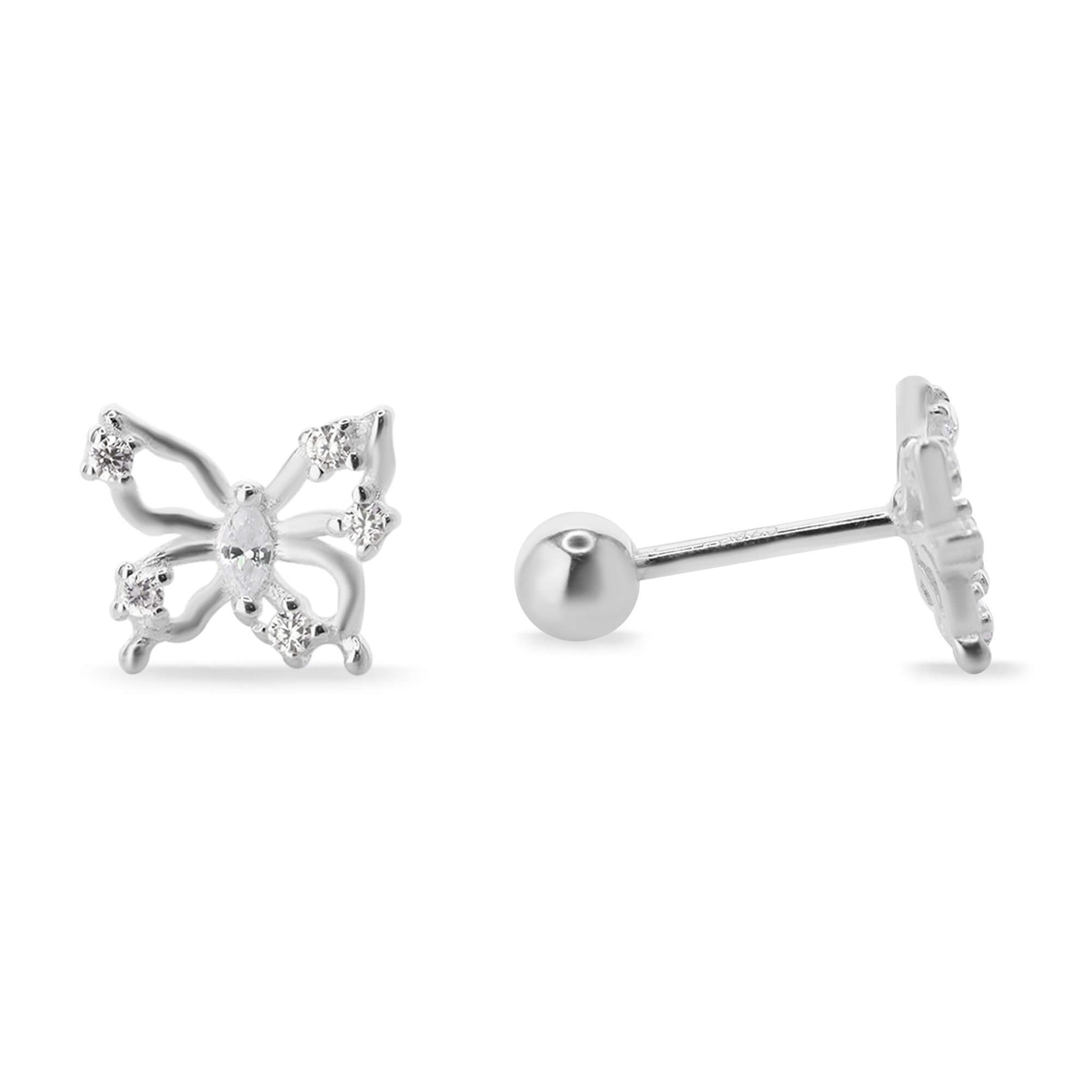 Aros de Plata 925 Diseño Tope Mariposa Calada con Circones