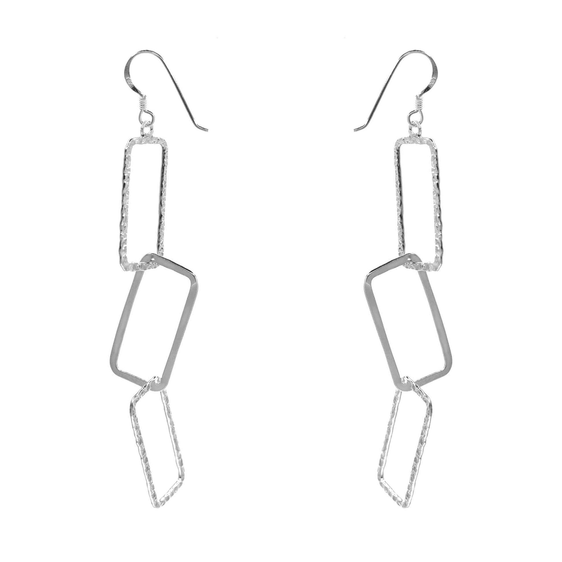 Aros de Plata 925 Diseño Unión de Marcos Estilo Martillado y Lisos.