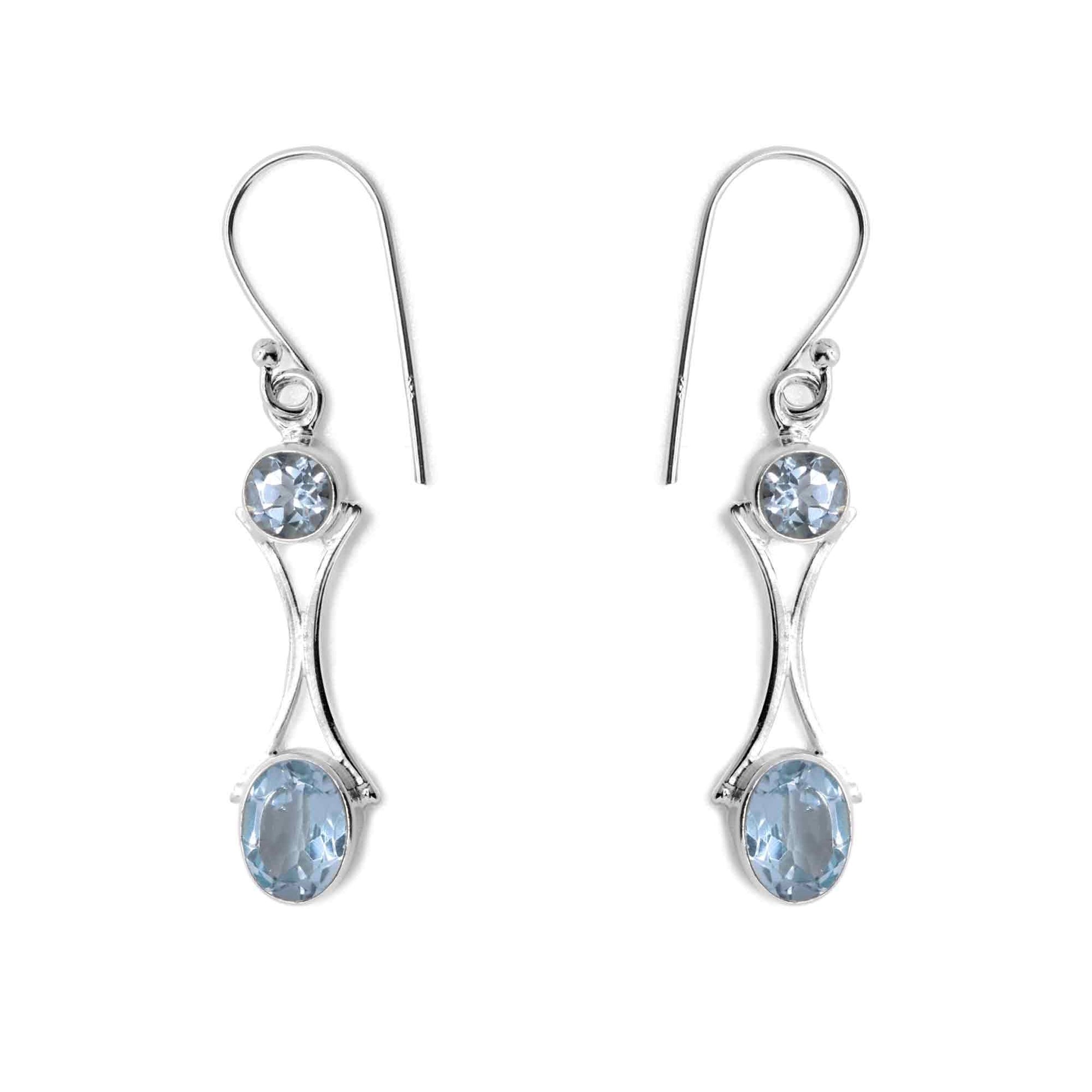 Aros de Plata 925 Doble Piedra Agua marina. Peso 4,08 gramos aprox. Tamaño 4,4 cm.