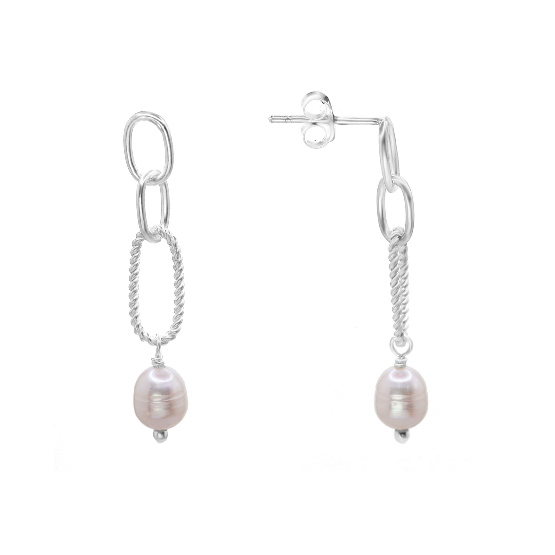 Aros de Plata 925 Estilo Cadena con Perlas de Río.