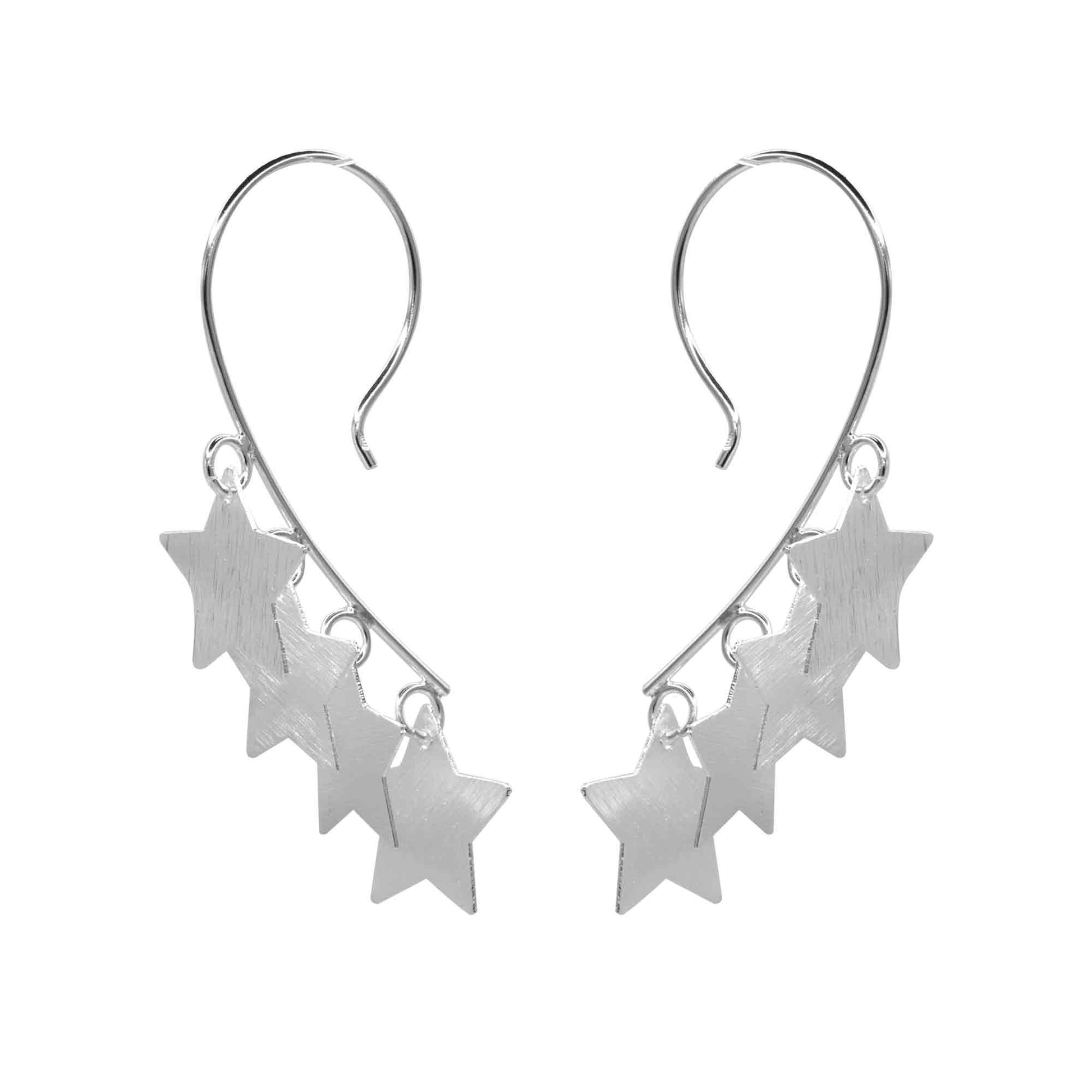 Aros de Plata 925 Estilo Cascada con Estrellas Satinadas