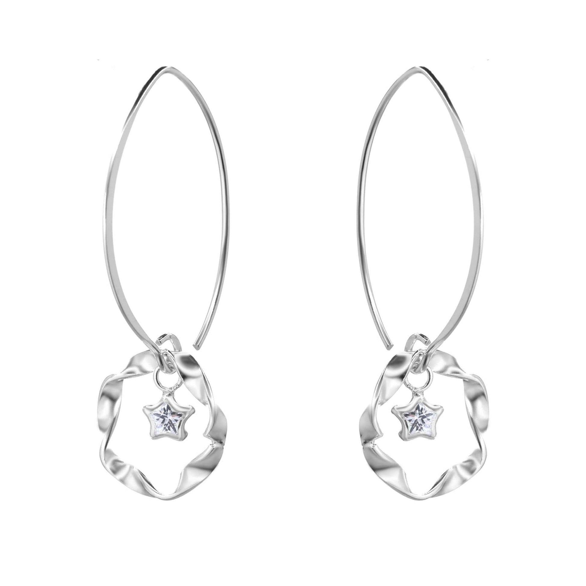 Aros de Plata 925 Estilo Gancho con Argolla Semi Anudada con Estrella de Circón.