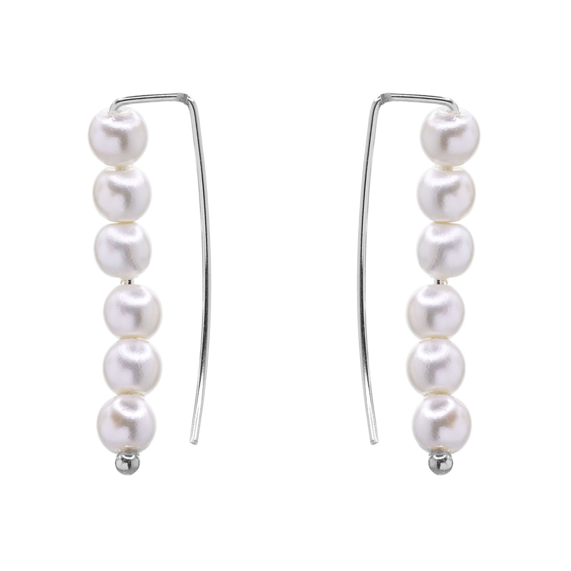 Aros de Plata 925 Estilo Trepador con Serie de Perlas