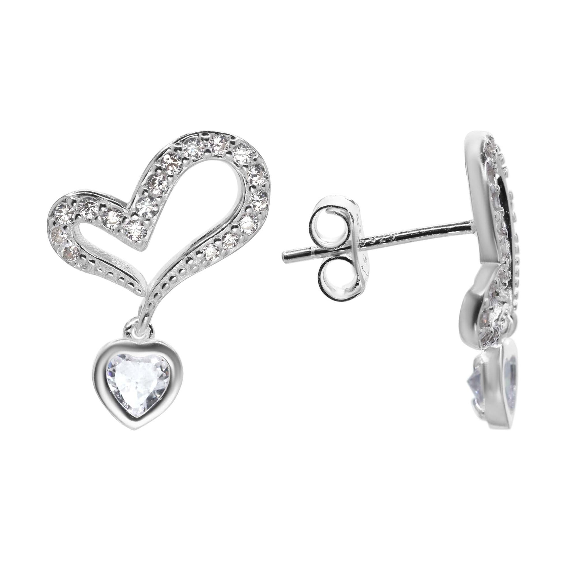 Aros de Plata 925 Figura Corazón con Circones y Pequeño Dije de Corazón.