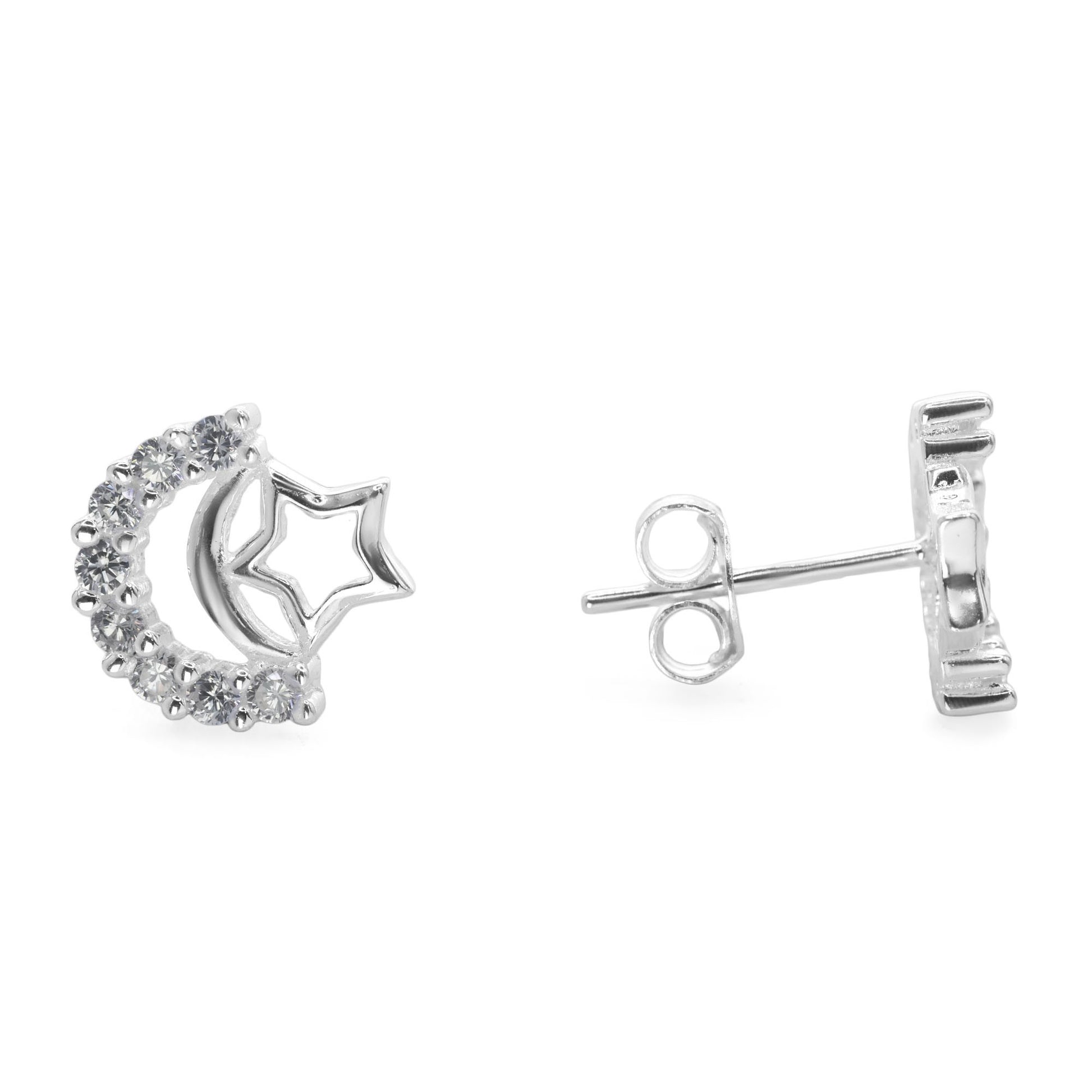 Aros de Plata 925 Figuras de Estrella y Luna con Circones