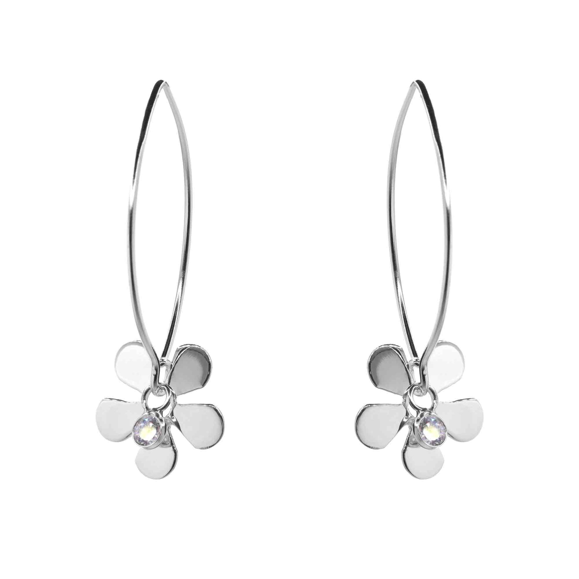 Aros de Plata 925 Flores Colgantes con Punto de Circón.