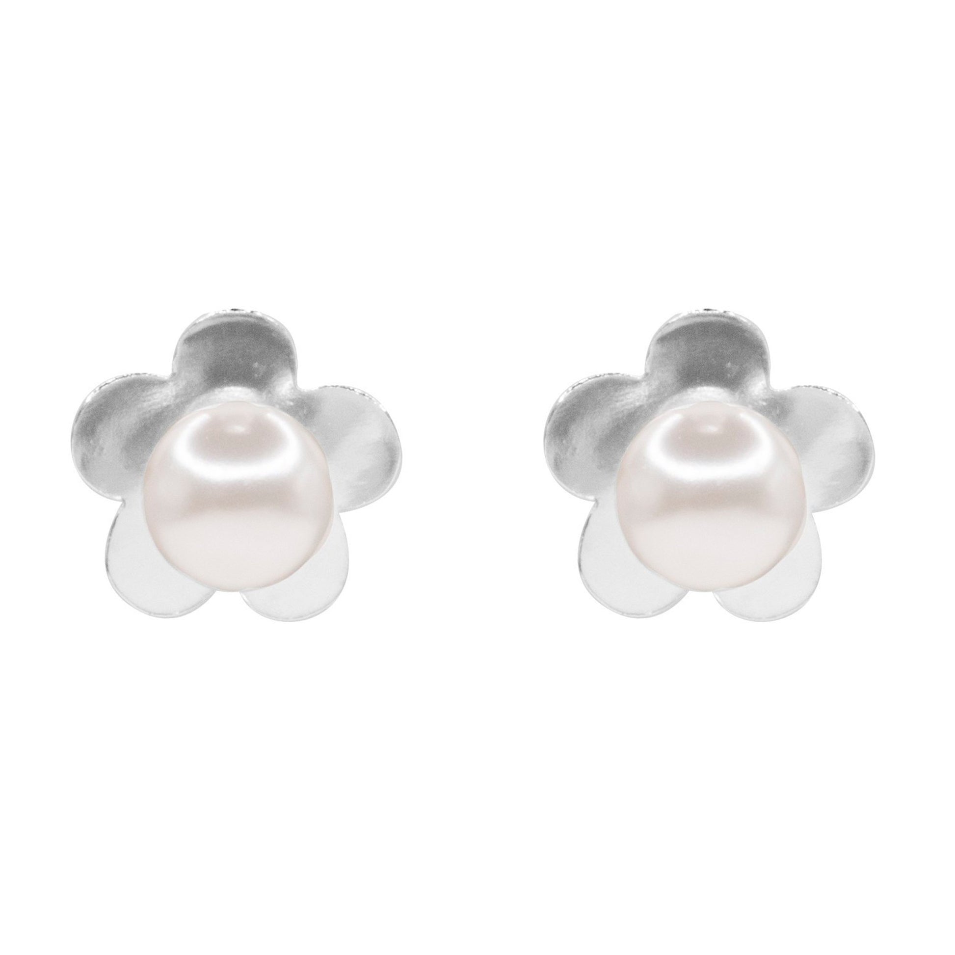 Aros de Plata 925 Flores con Perla