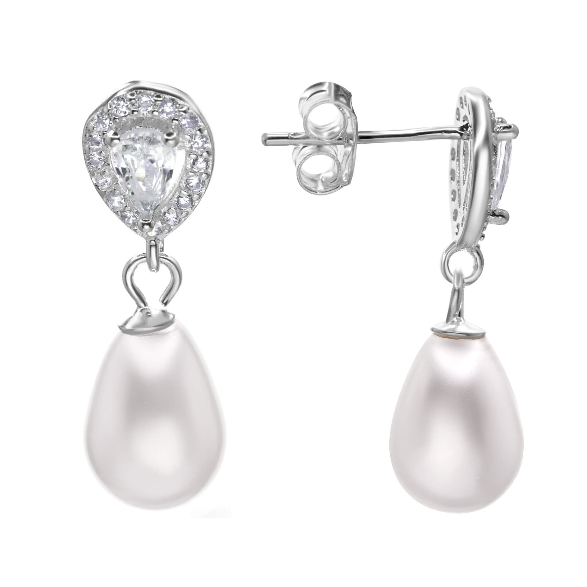 Aros de Plata 925 Gota de Circón con Colgante de Perla Imitación