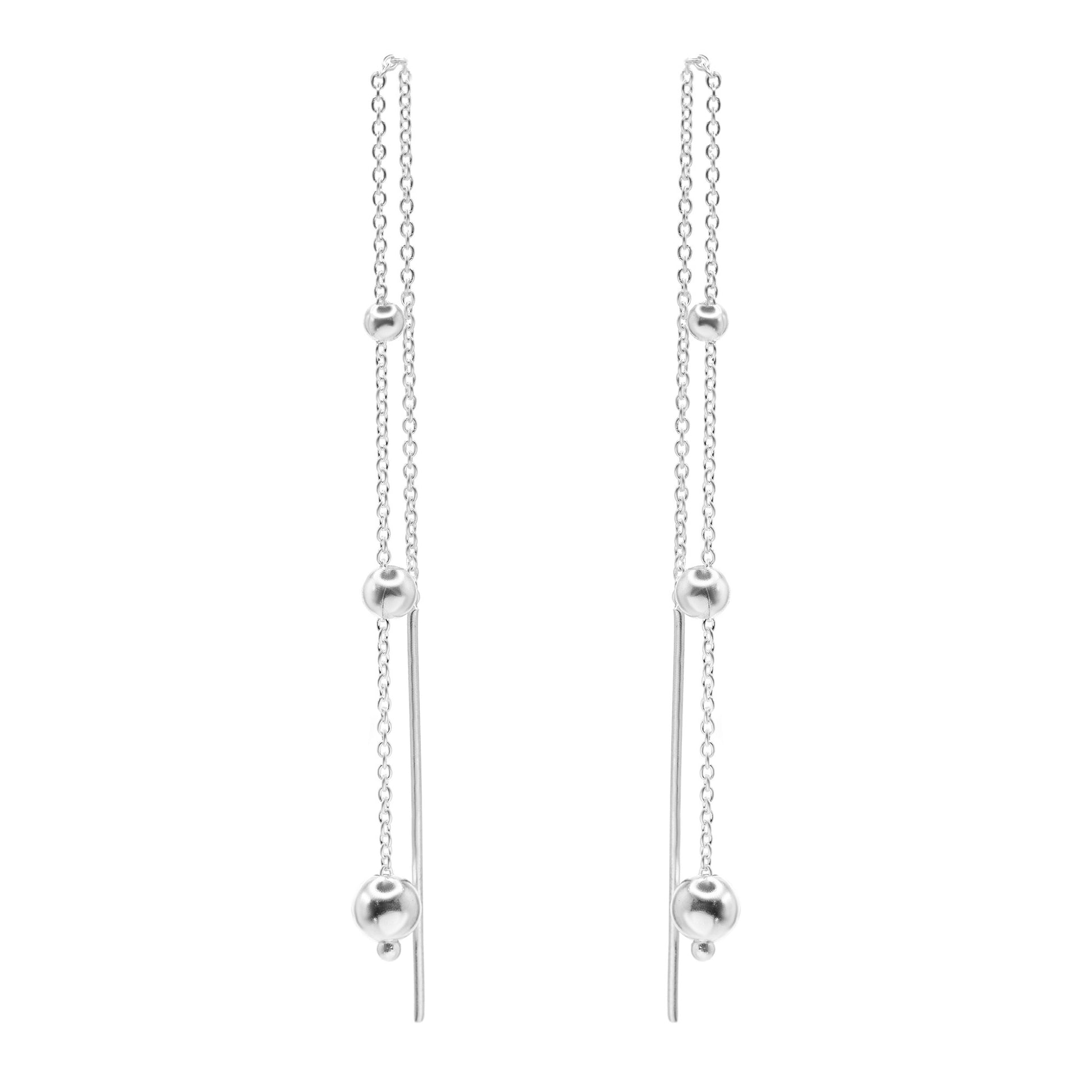 Aros de Plata 925 Modelo Cadena con Esferas y Varita.