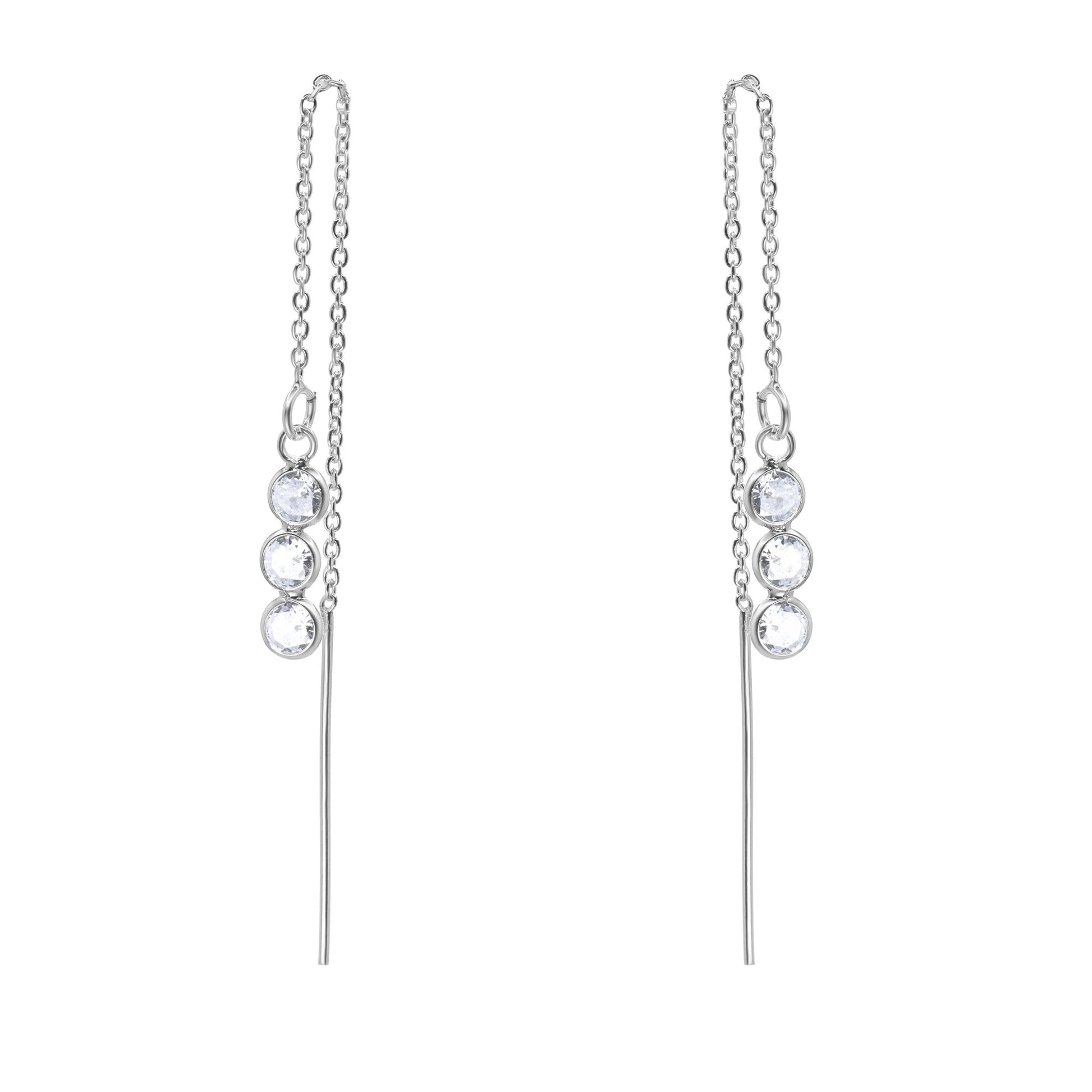 Aros de Plata 925 Modelo Cadena con Triple Circón