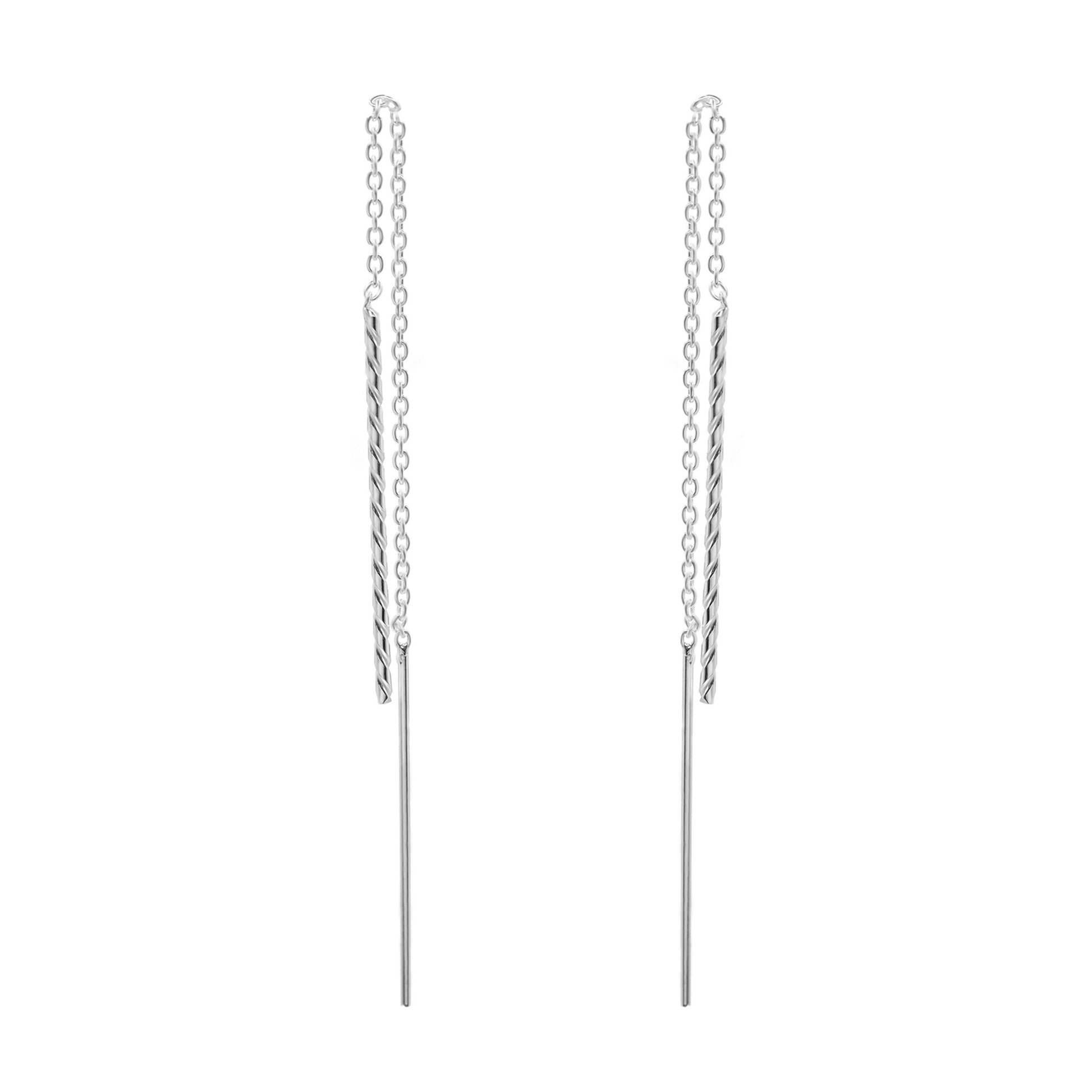 Aros de Plata 925 Modelo Cadena con Varita Espiral.