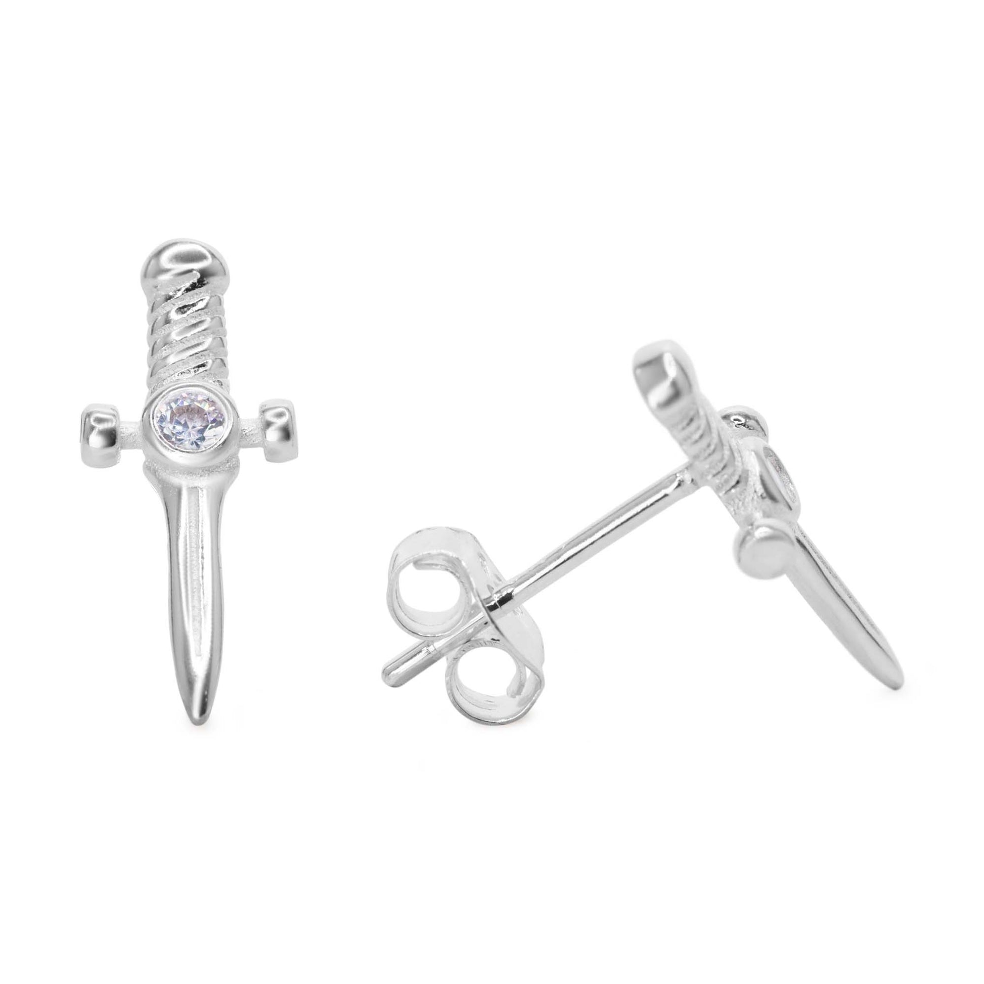 Aros de Plata 925 Modelo Daga con Botón de Circón