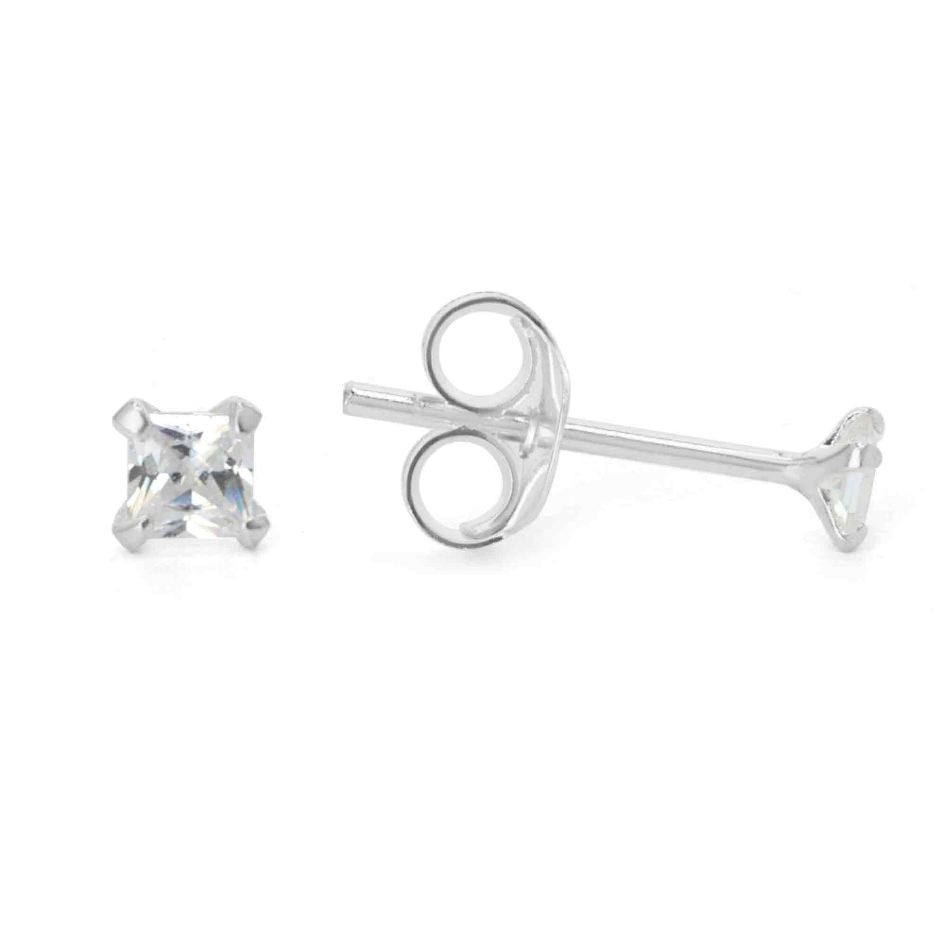 Aros de Plata 925 Pequeño Circón Cuadrado 2 mm