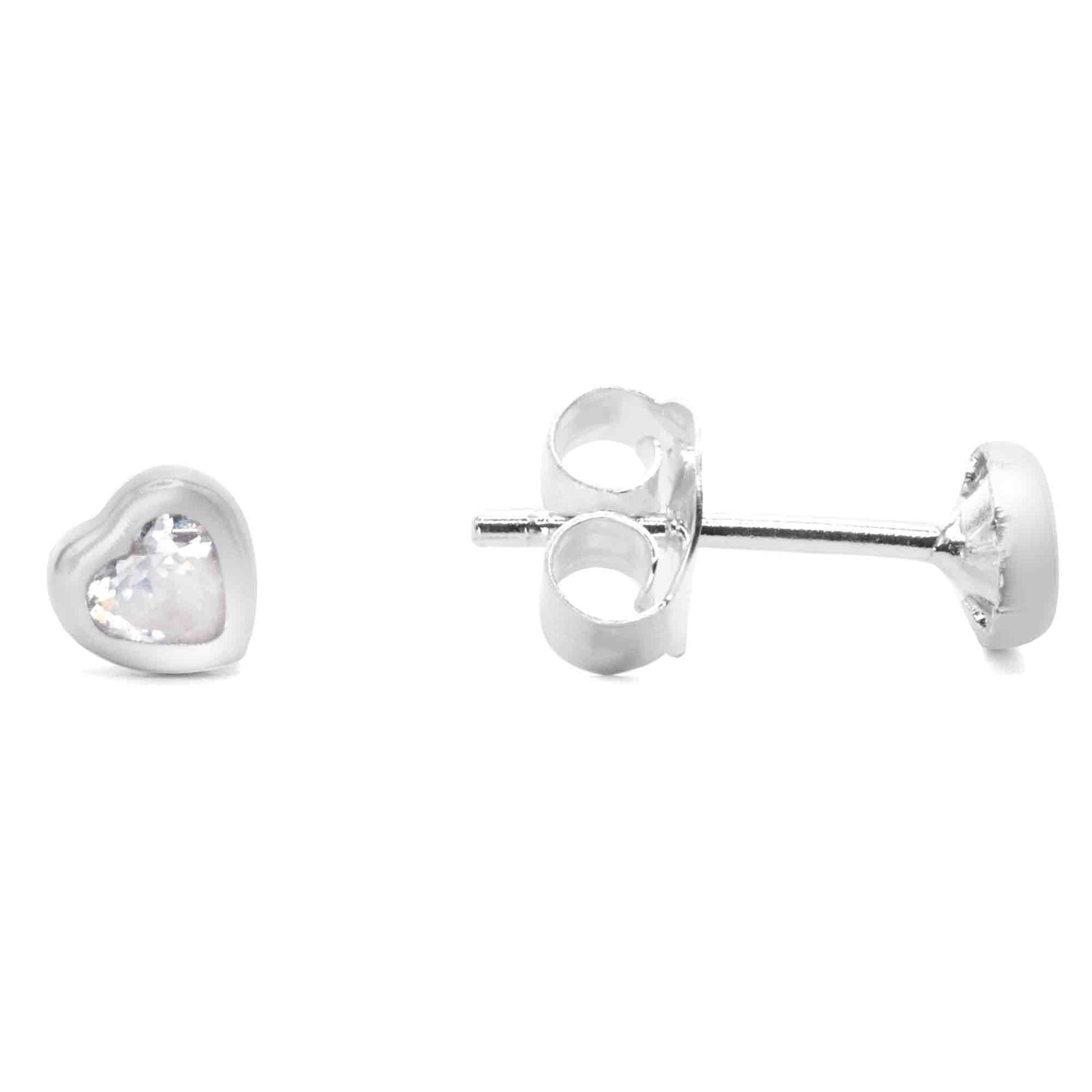 Aros de Plata 925 Pequeños Corazones con Circón 5 mm