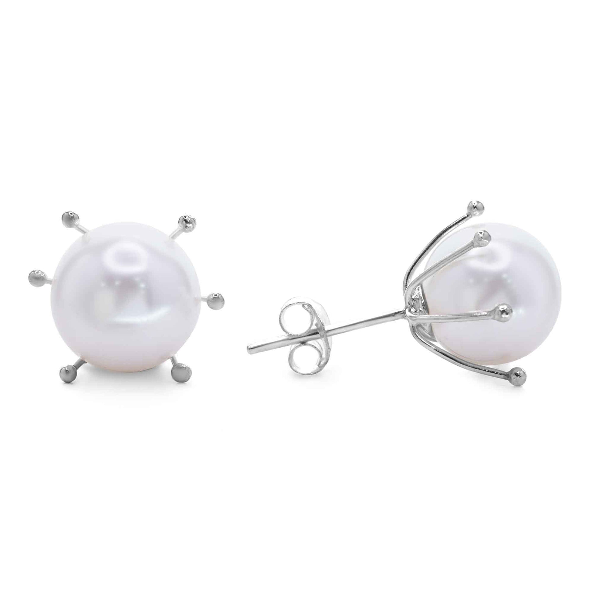 Aros de Plata 925 Perla Con Pistilo 10 mm