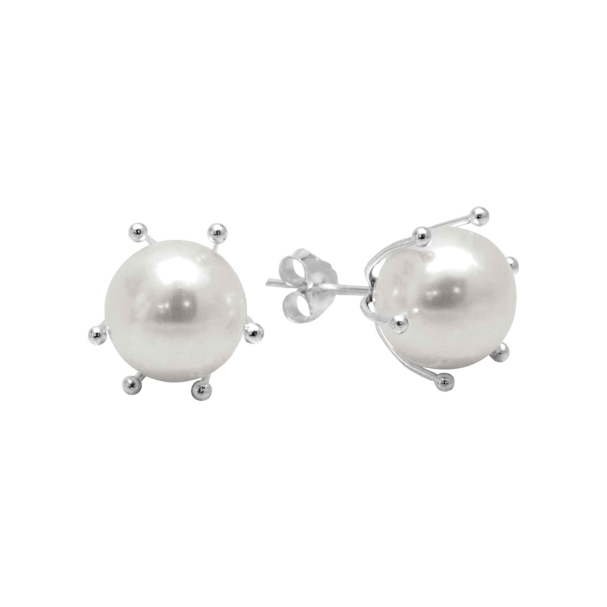 Aros de Plata 925 Perla de Imitación con Pistilo 6 mm