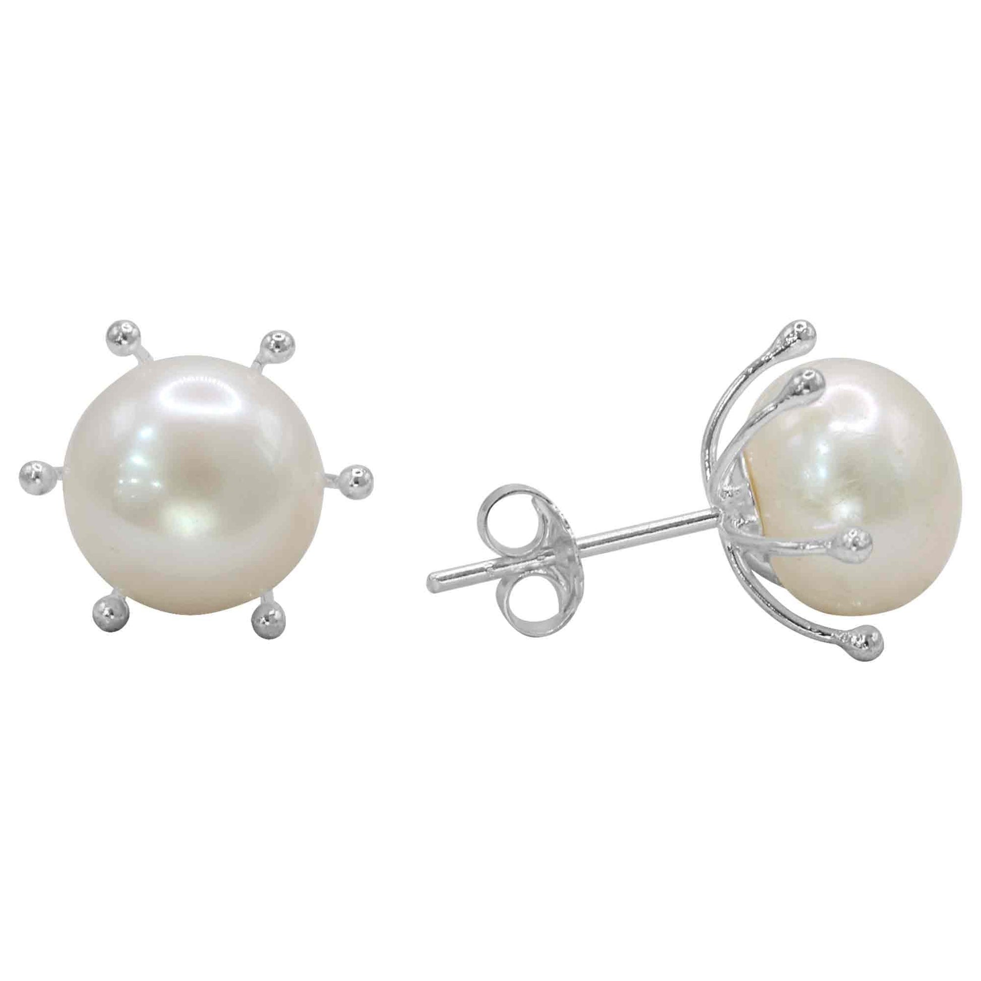 Aros de Plata 925 Pistilo con Perla Original 8 mm