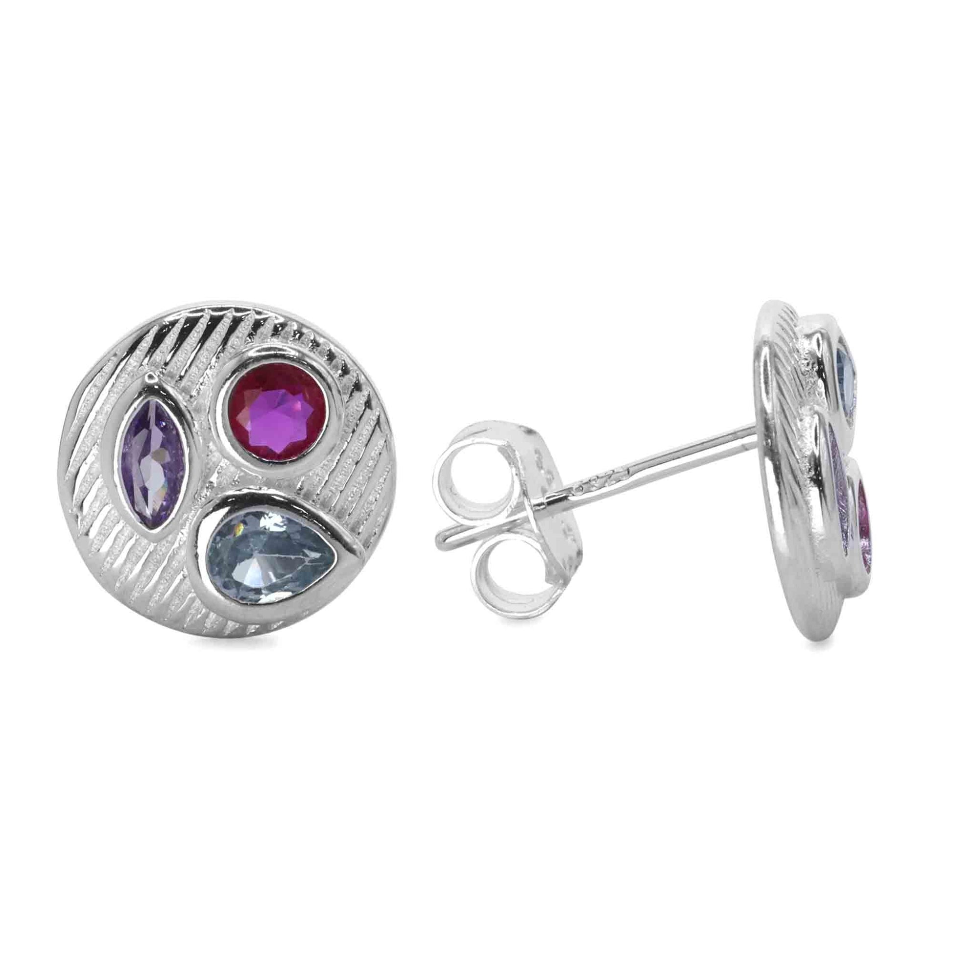 Aros de Plata 925 Placa Biselada con Aplicación Circones de Colores.