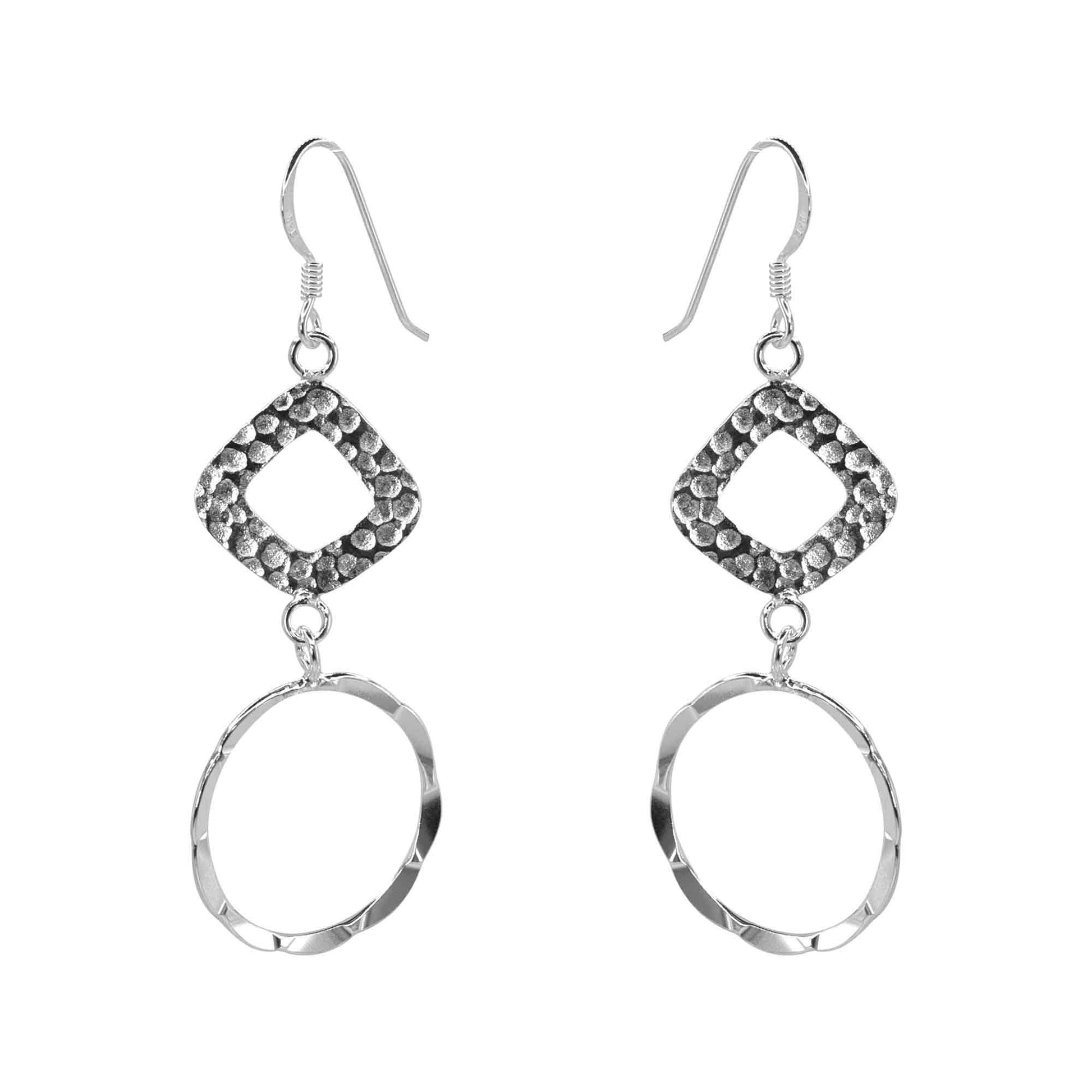 Aros de Plata 925 Placas de Rombos Martillada y Argollas. Peso 3,3 Gramos Aprox. Tamaño 5,7 cm.