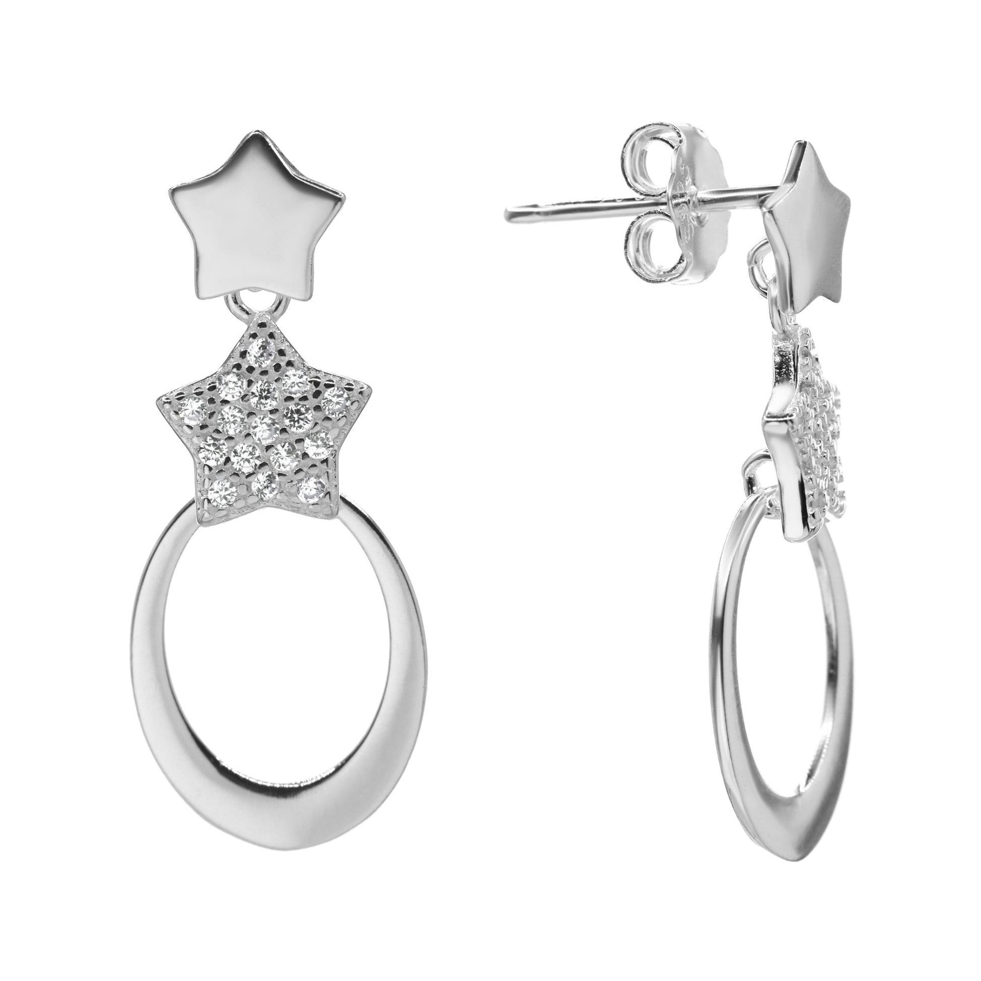 Aros de Plata 925 Placas Estrellas Lisas y Circones con Argolla Ovalada.