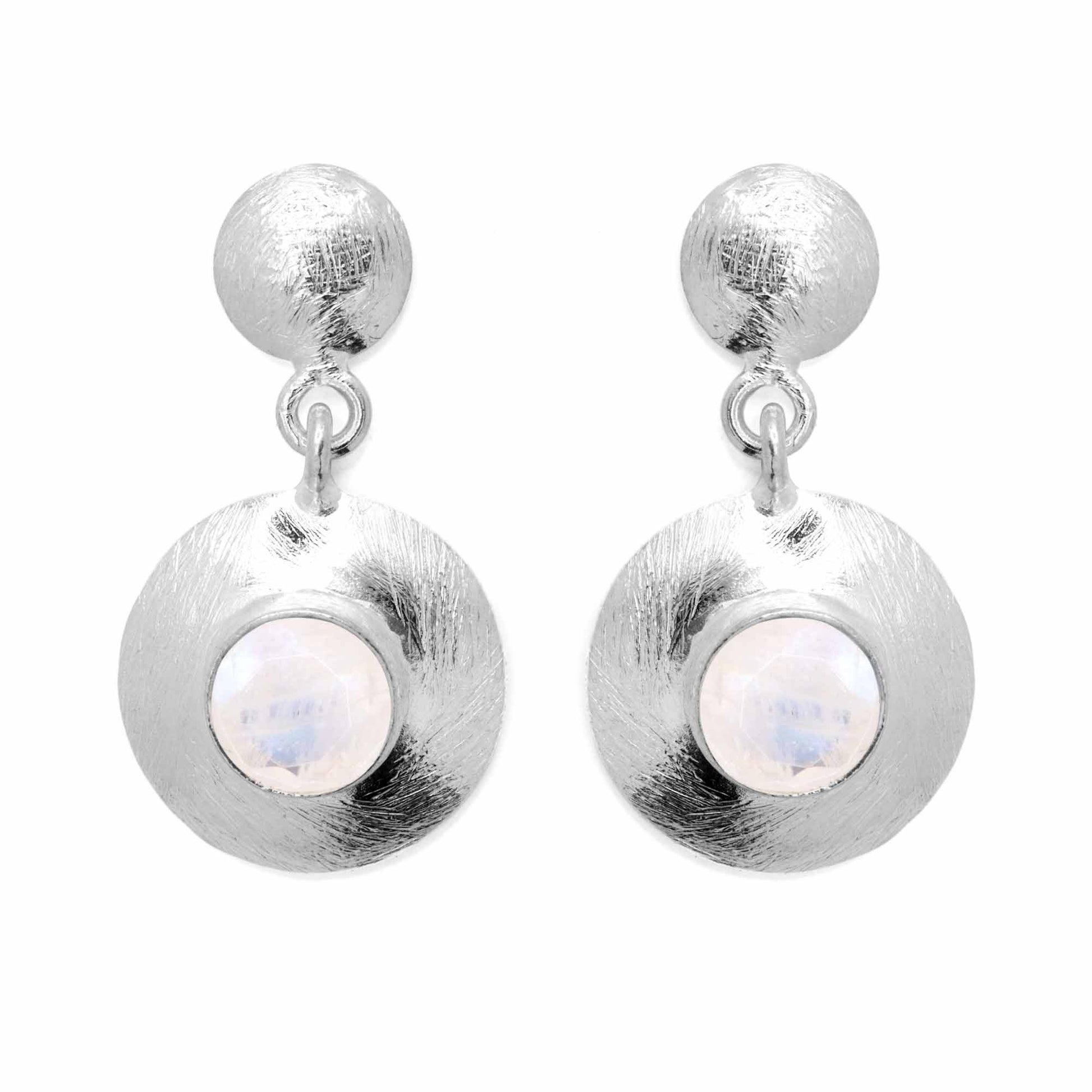 Aros de Plata 925 Placas Redondas Satinadas con Piedra Luna