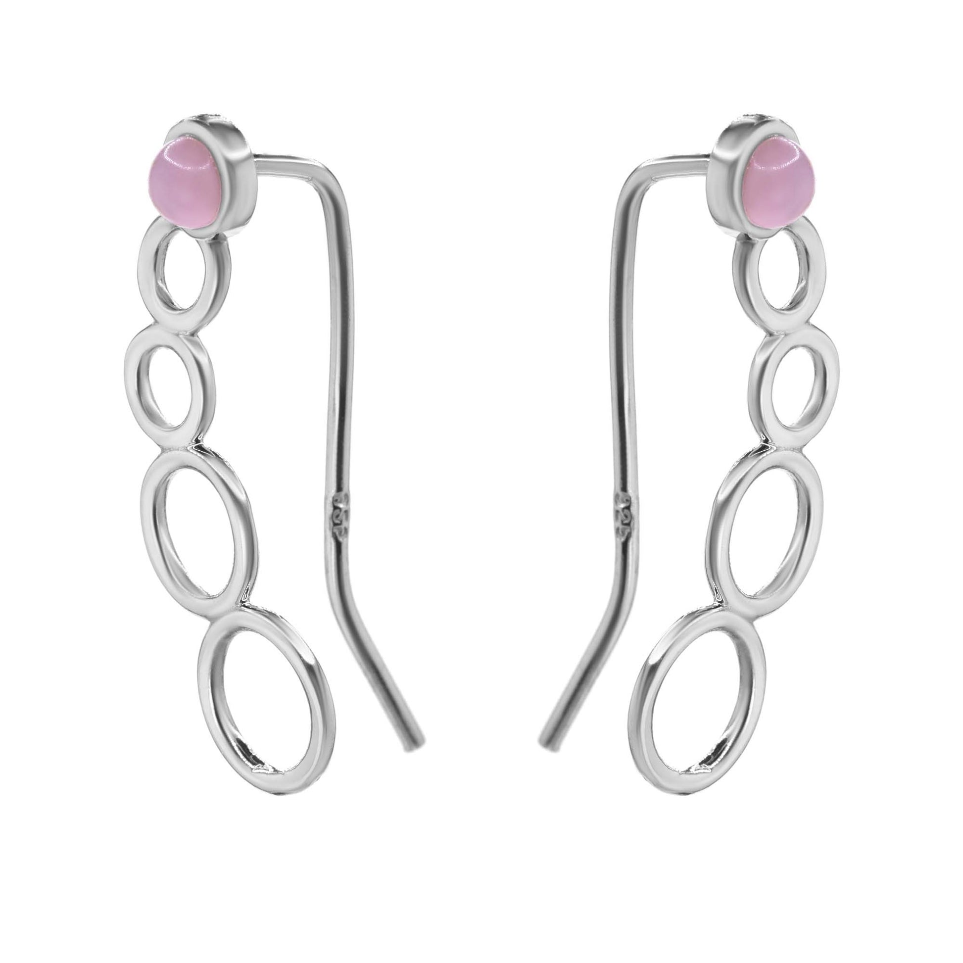 Aros de Plata 925 Trepadores de Círculo con Piedra de Cuarzo Rosa.