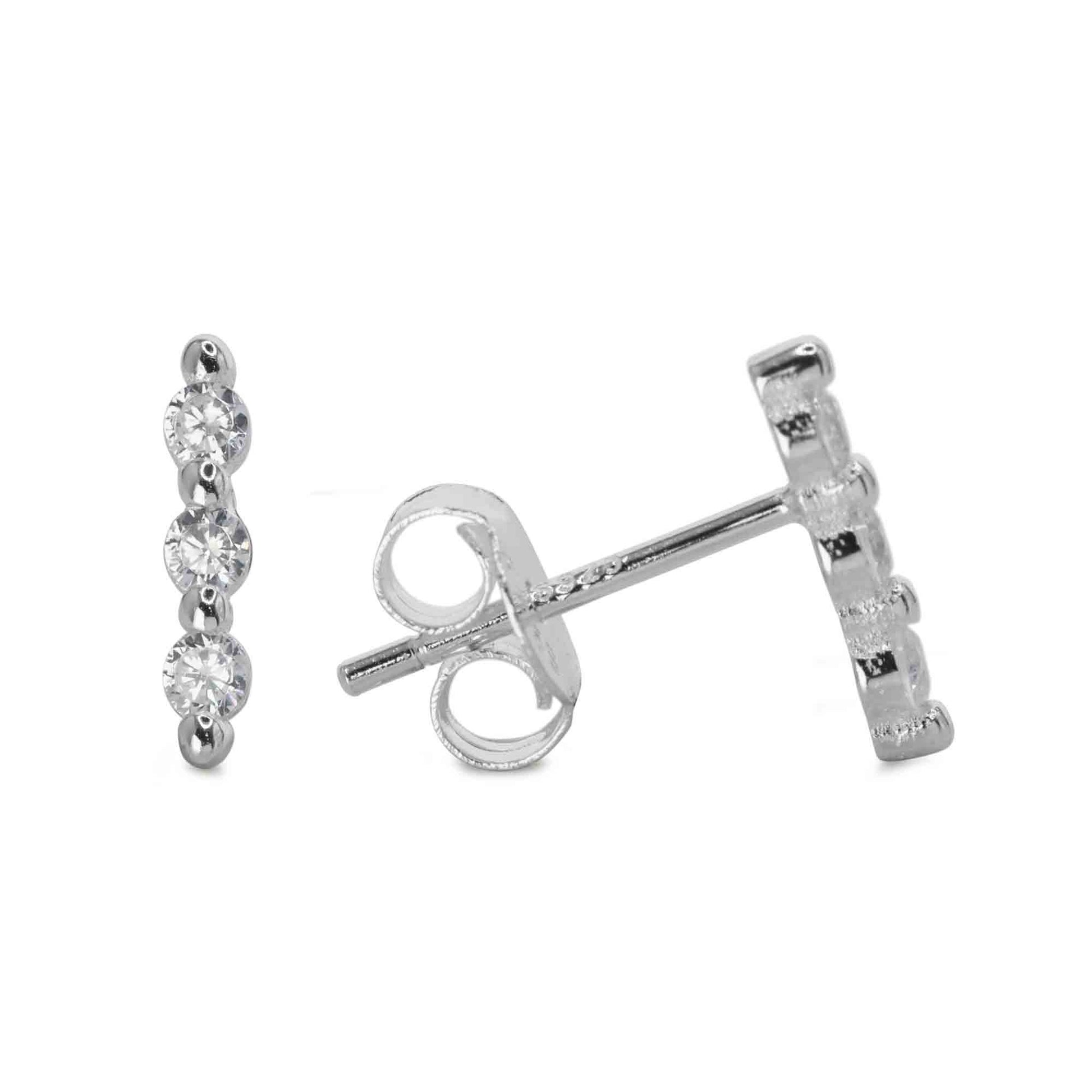 Aros de Plata 925 Vara con Triple Circón. Peso 0,65 Gramos Aprox. Tamaño 1 cm.