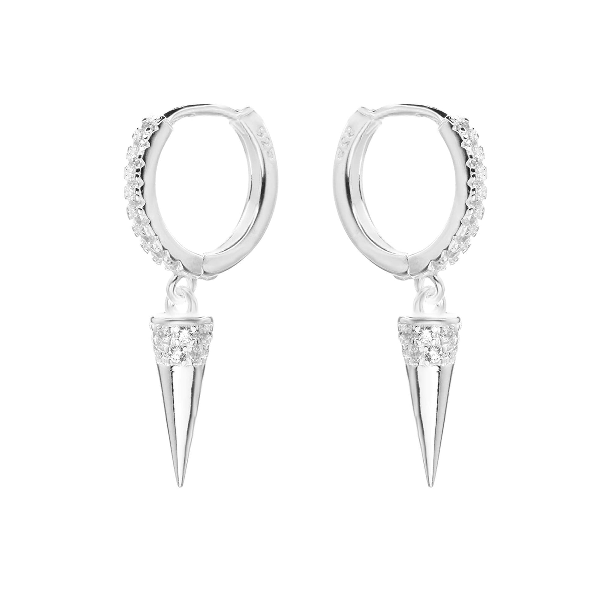 Aros de Plata - Argolla con Serie de Circones y Colgante de Péndulo con Circones