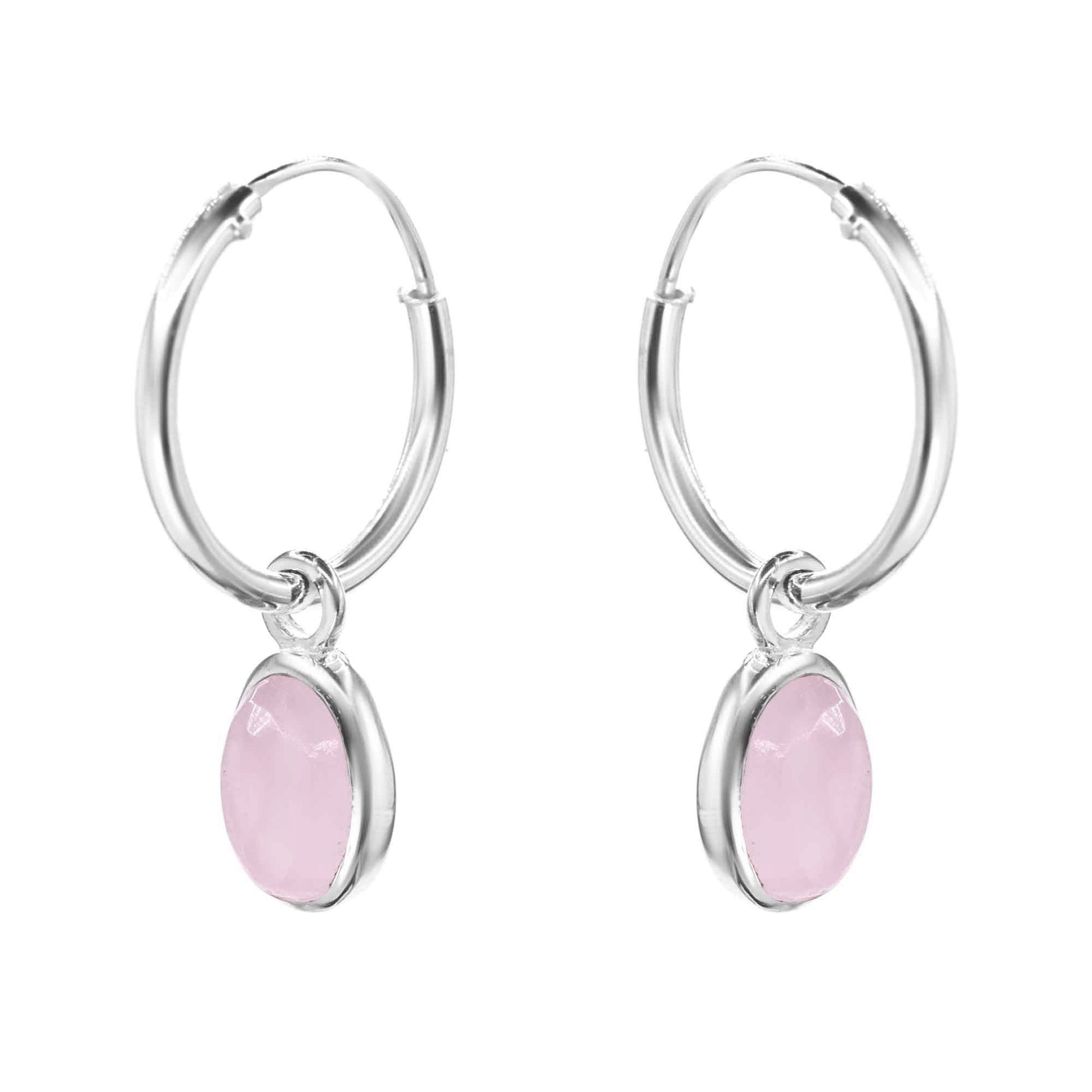 Aros de Plata 925 Argollas con Colgante de Piedra Cuarzo Rosa.