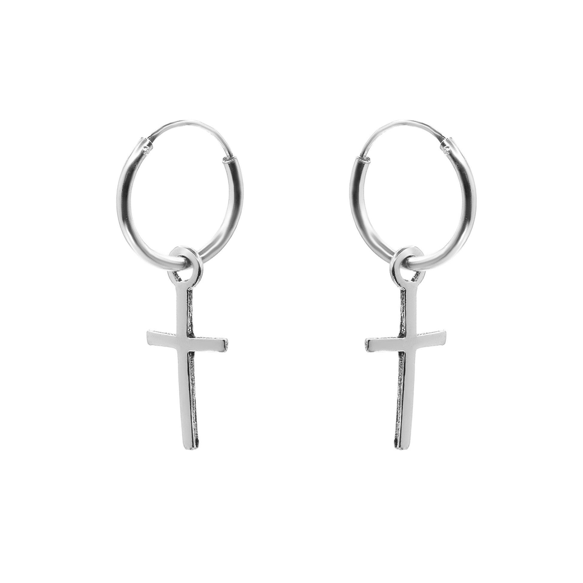 Aros de Plata 925 Argollas con Colgantes de Cruz.