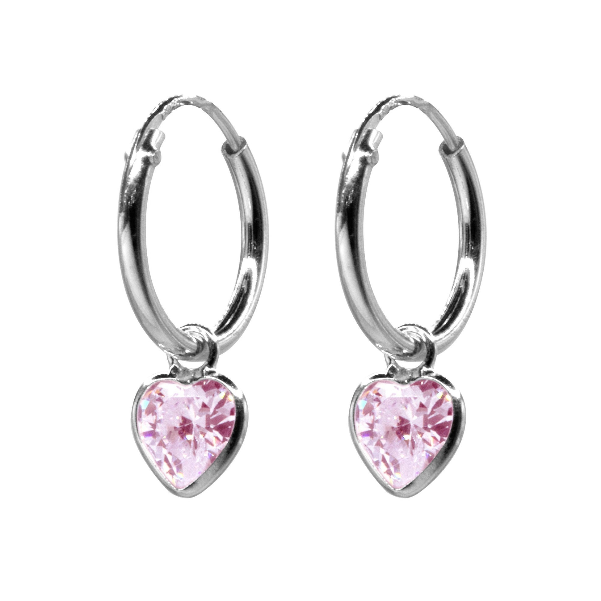 Argollas pequeñas con corazón circón rosa, ideales para personas que buscan algo tierno y significativo. Su diseño las hace perfectas para regalar en fechas especiales