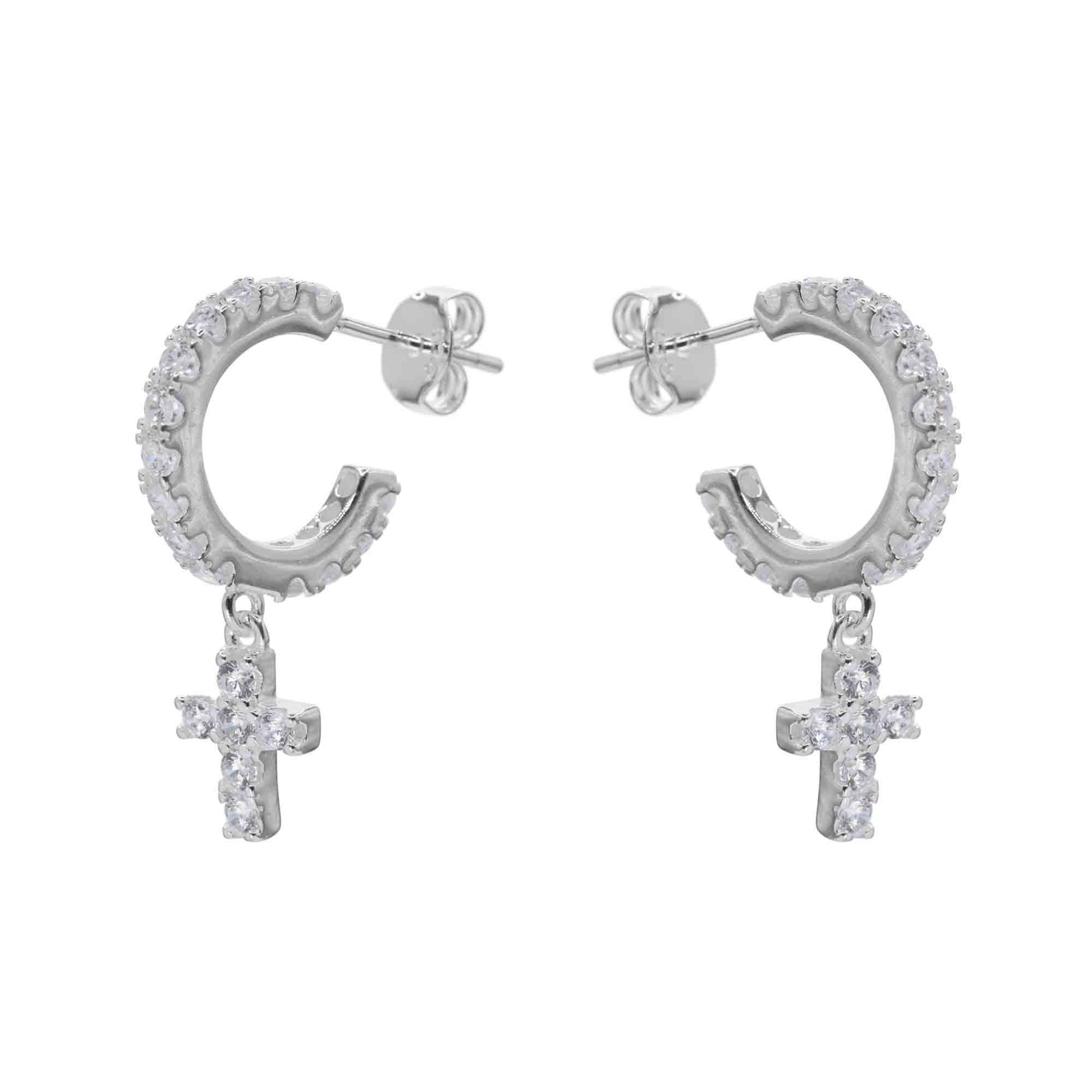 Aros de Plata 925 Argollas de Circones con Colgante de Cruz.