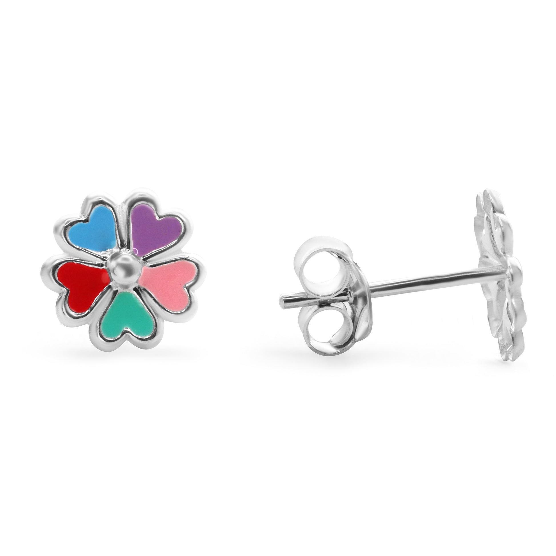 Aros de Plata 925 Diseño Flores Arcoíris.
