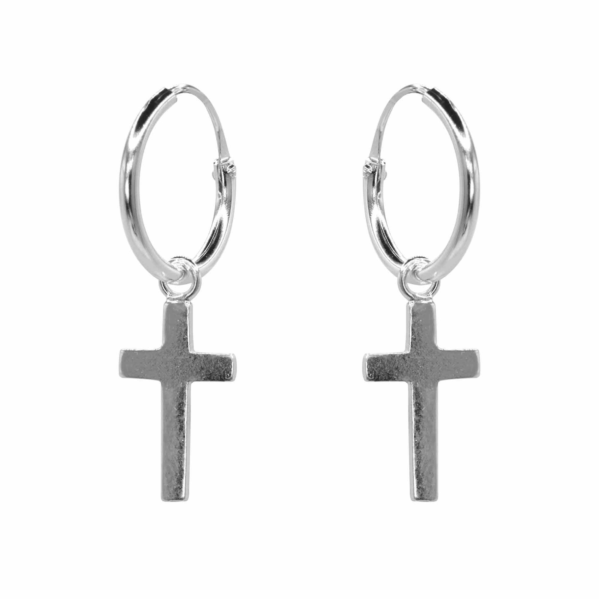 Aros de Plata Pequeñas Argollas con Cruz