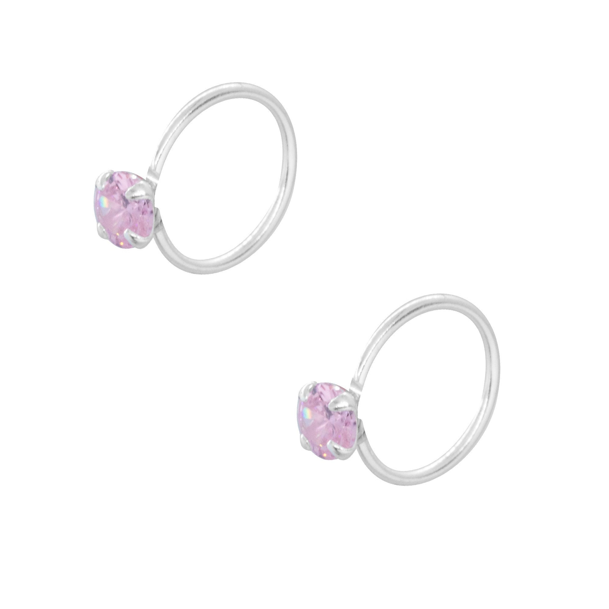 Aros de Plata Piercing con Circón Rosa 10 mm