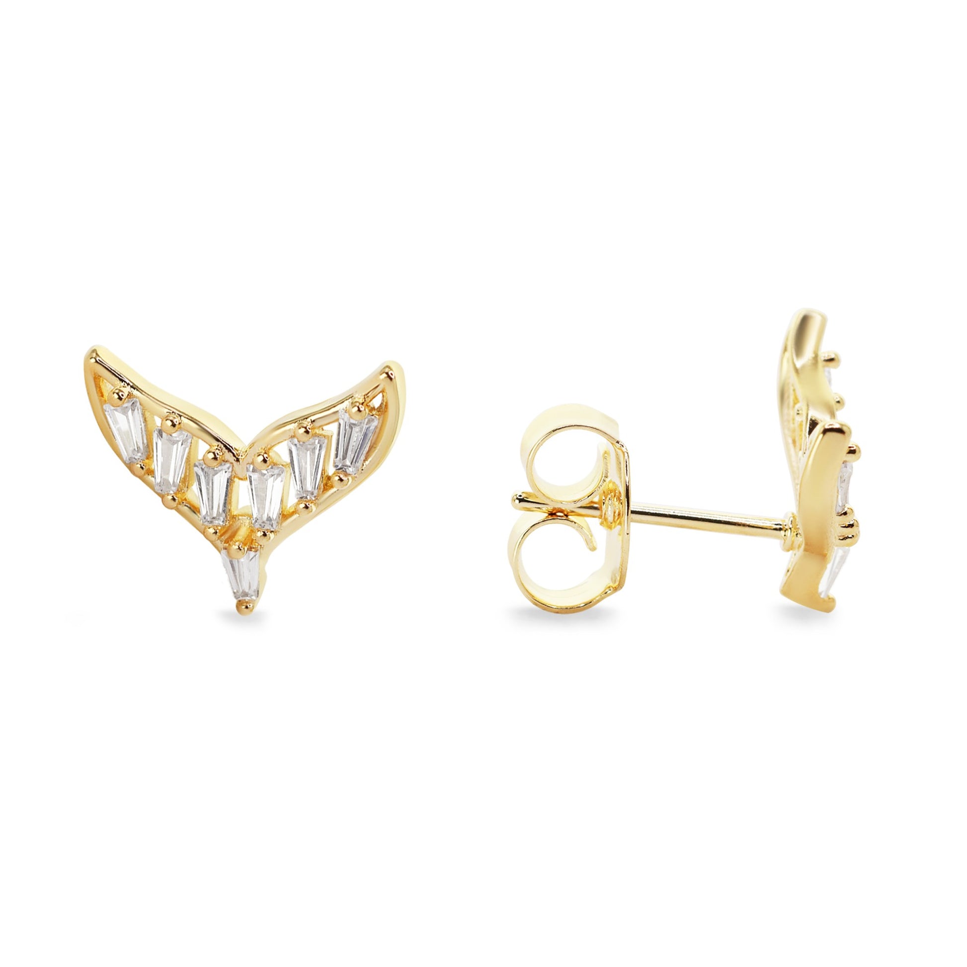 Aros Enchapadas en Oro Cola de Ballena con Circones. Tamaño 1 cm.