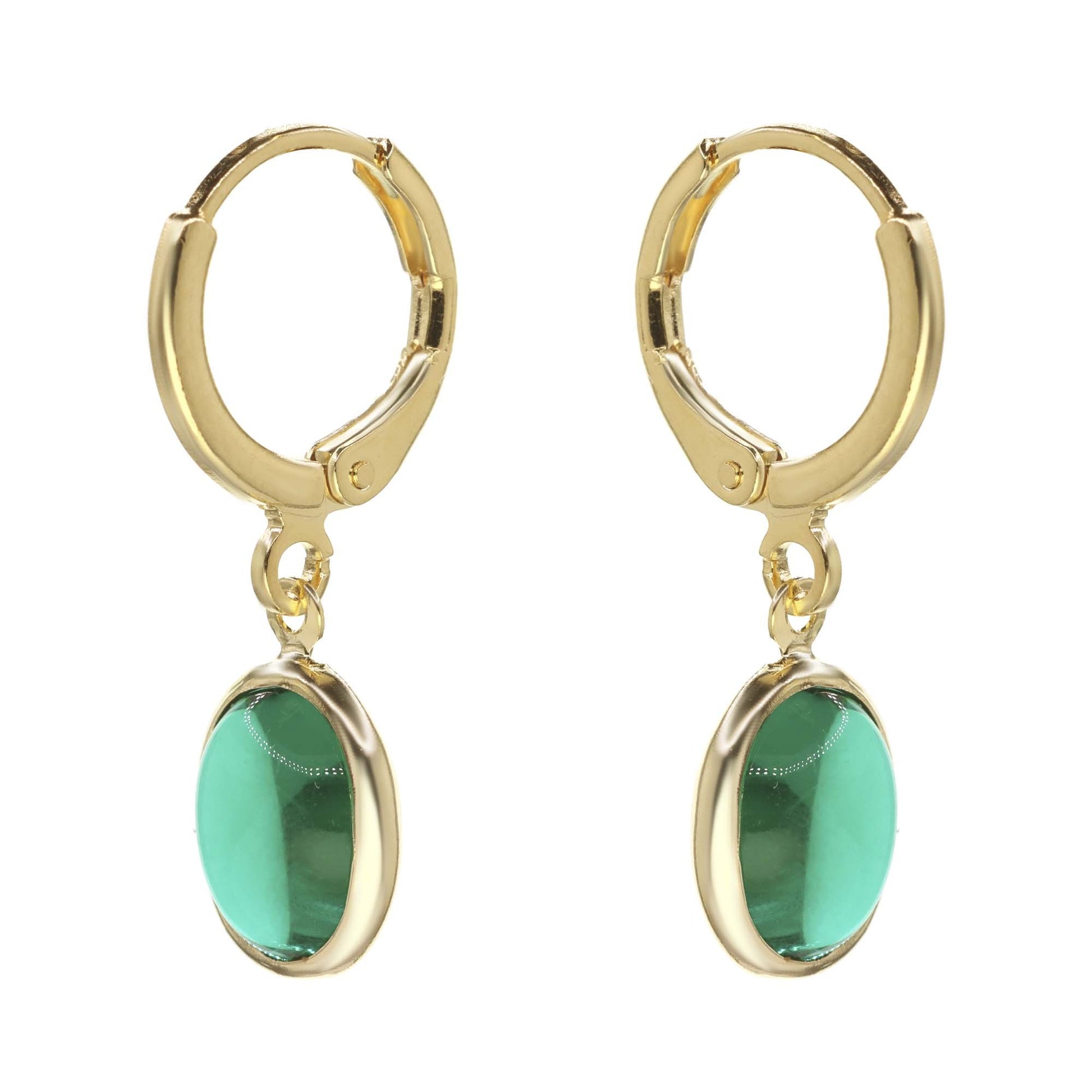 Aros Enchapado en Oro Diseño Argolla con Ovalo Verde 29 mm