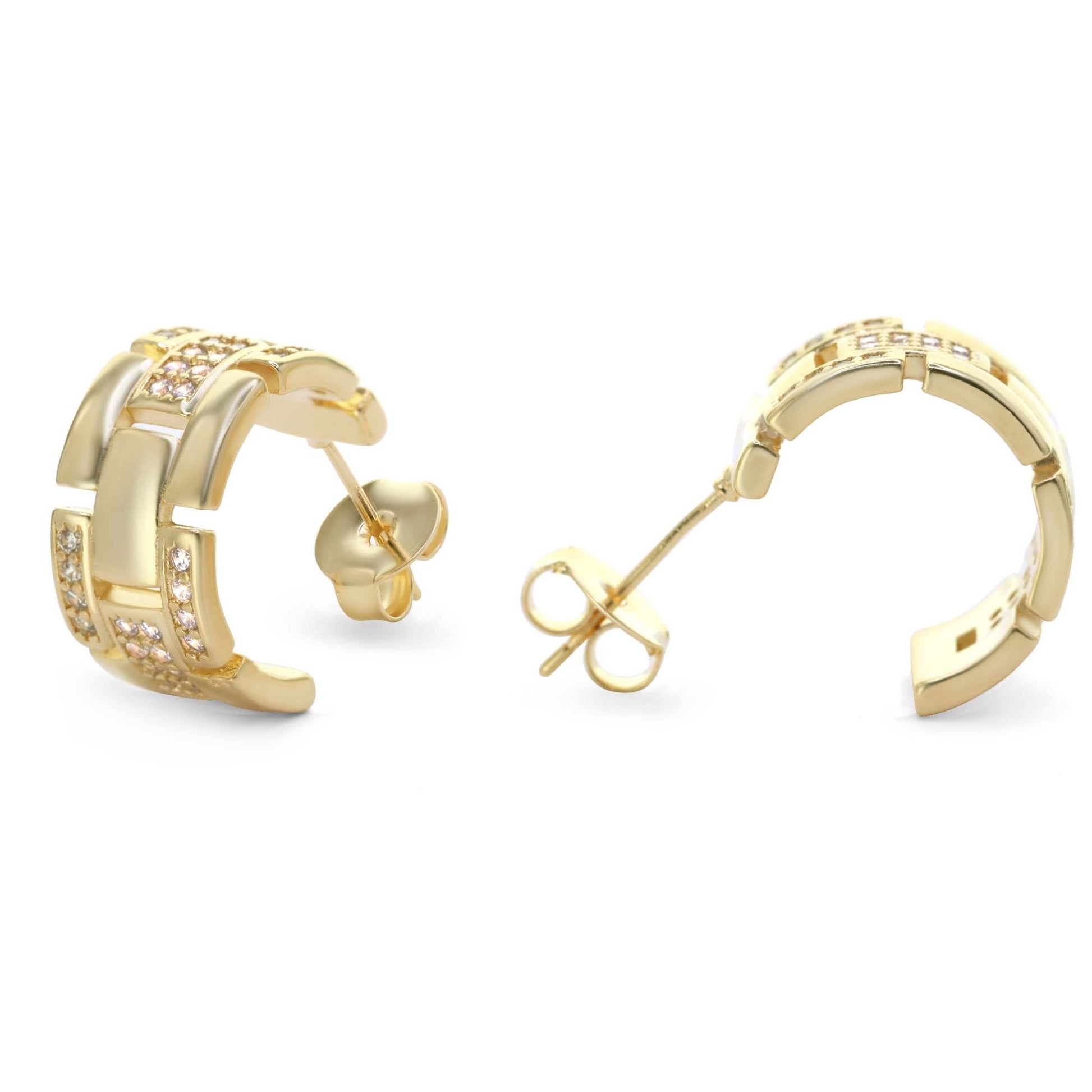 Aros Enchapados en Oro Argolla Semi Abierta Unión Fragmentos Lisos y Circones